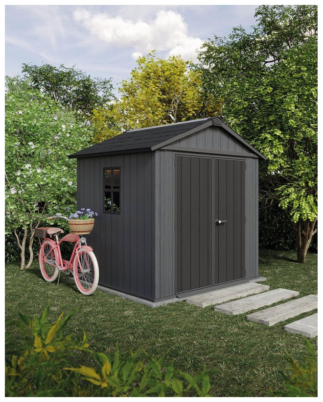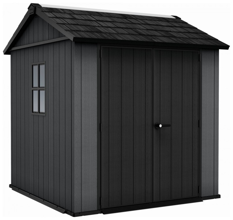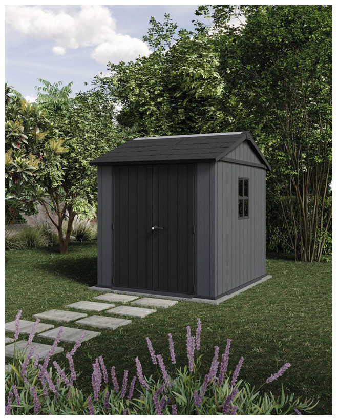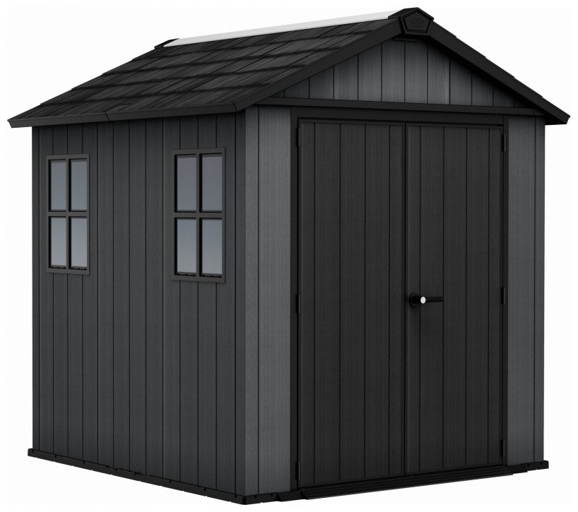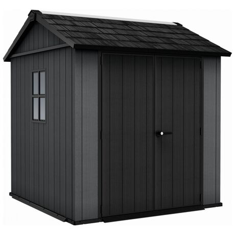 Πλαστική αποθήκη κήπου Keter Newton Plus Wide 7x7.5, ανθεκτική και ευρύχωρη, ιδανική για αποθήκευση εργαλείων.