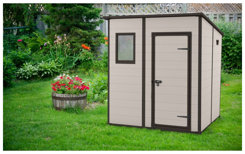 Πλαστική Αποθήκη Κήπου 6x6 Manor από την Keter, ιδανική για την αποθήκευση και προστασία του εξοπλισμού σας από τις εξωτερικές καιρικές συνθήκες.