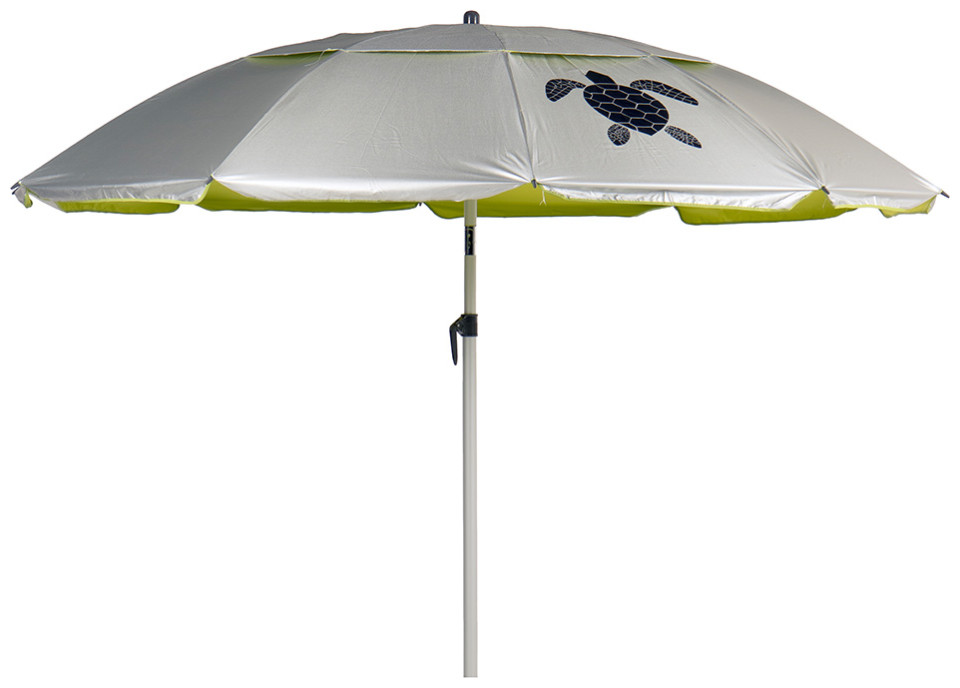 Ομπρέλα παραλίας Eden 200cm, ασημί/lime, με αντηλιακή προστασία SPF50+.