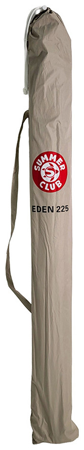 Η ομπρέλα παραλίας Eden 225cm σε μαύρο και μπεζ χρώμα είναι η ιδανική επιλογή για τις καλοκαιρινές σας εξορμήσεις. Κατασκευασμένη από την επώνυμη μάρκα SUMMER CLUB, αυτή η ομπρέλα διαθέτει διάμετρο 225cm, προσφέροντας άφθονη σκιά για εσάς και την παρέα σας. Ο σκελετός της είναι μεταλλικός και βαμμένος, εξασφαλίζοντας αντοχή και σταθερότητα. Το ύφασμα είναι polyester silver με αντηλιακή επικάλυψη anti-UV SPF50+, προστατεύοντας σας από τις βλαβερές ακτίνες του ήλιου. Η ομπρέλα διαθέτει αεραγωγό για καλύτερη κυκλοφορία του αέρα και 10 ακτίνες από fiberglass 6mm για επιπλέον αντοχή. Επίσης, περιλαμβάνει 5 υποδοχές για σχοινιά, εξασφαλίζοντας τη σταθερή στερέωσή της στο έδαφος. Για την εύκολη μεταφορά της, έρχεται με σάκο μεταφοράς με ιμάντα ώμου, κάνοντάς την ιδανική για παραλία ή πικνίκ.