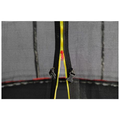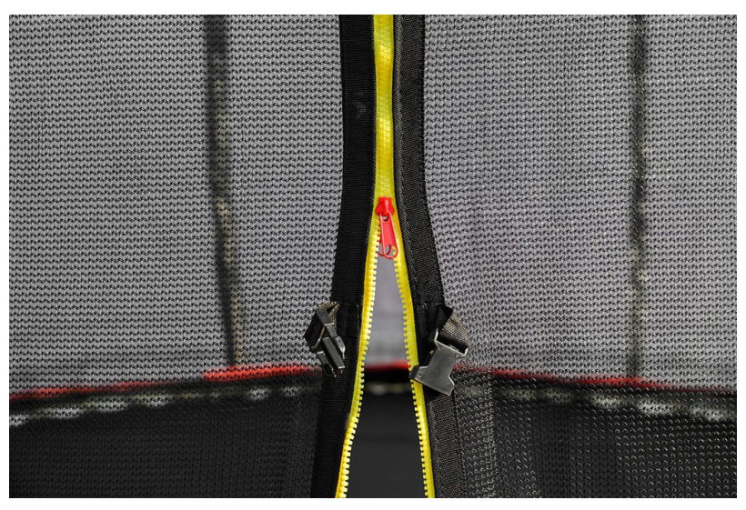Για εύκολη είσοδο στο τραμπολίνο, παρέχουμε το τραμπολίνο G21 SpaceJump με μια σκάλα που είναι στερεωμένη κάτω από την τρύπα στο δίχτυ ασφαλείας. Όταν πηδάτε, μπορείτε να ασφαλίσετε την είσοδο στο τραμπολίνο με φερμουάρ που κλειδώνει και αγκράφα ασφαλείας.