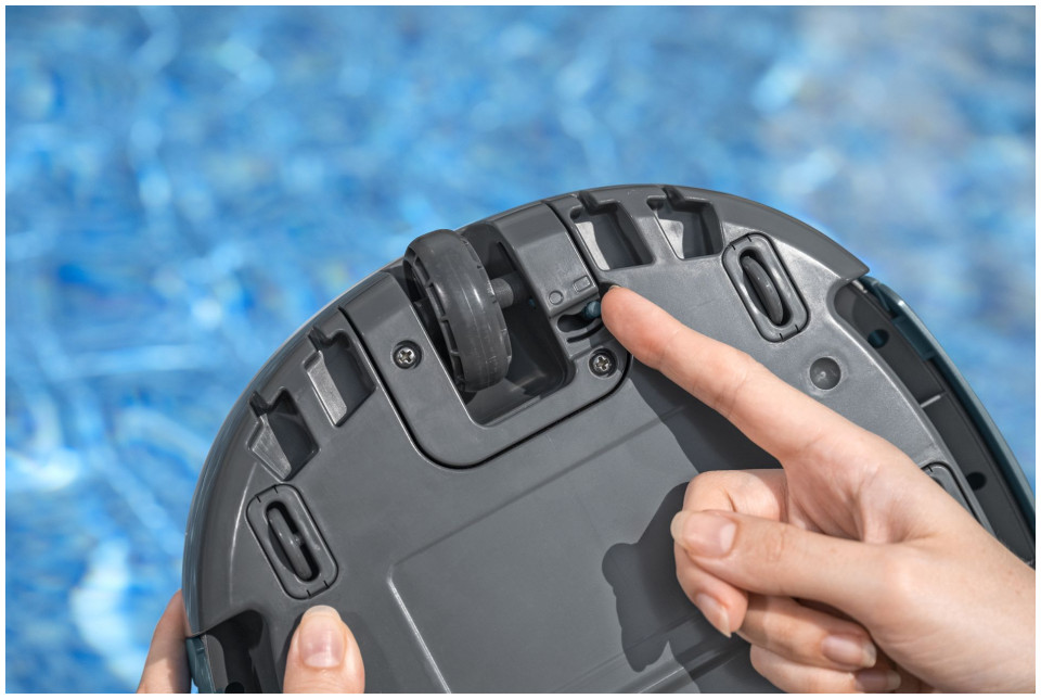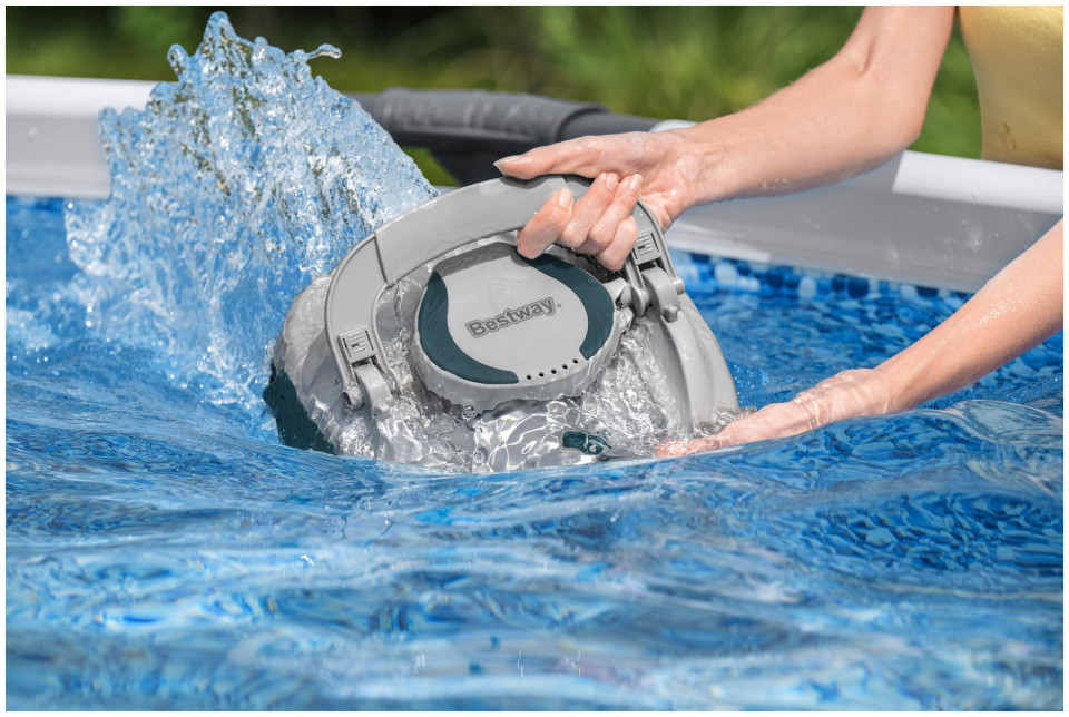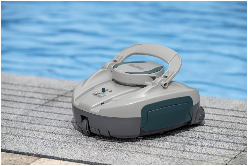 • Αυτόματη σκούπα που κινείται μόνη της κατά μήκος του πυθμένα της πισίνας για συλλογή απορριμμάτων.