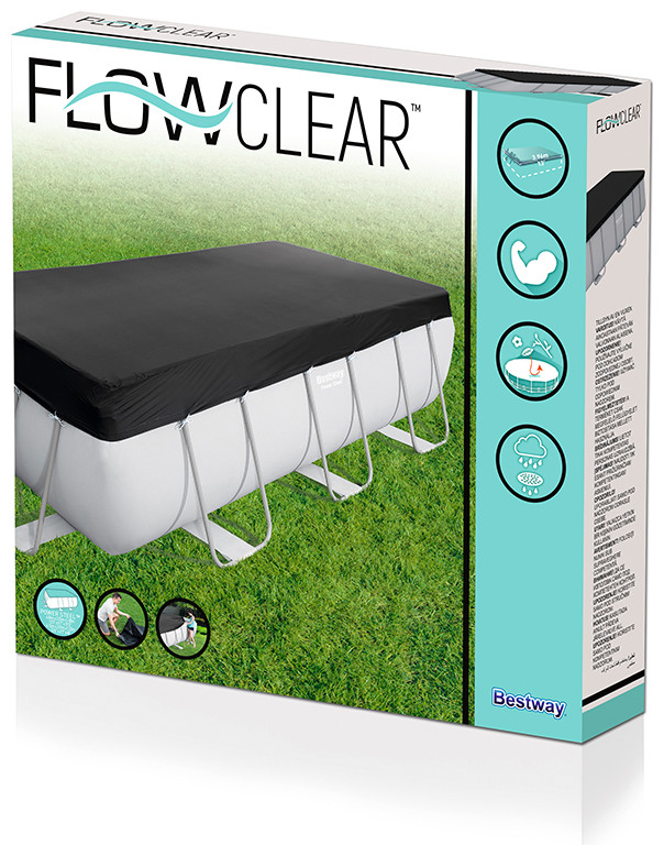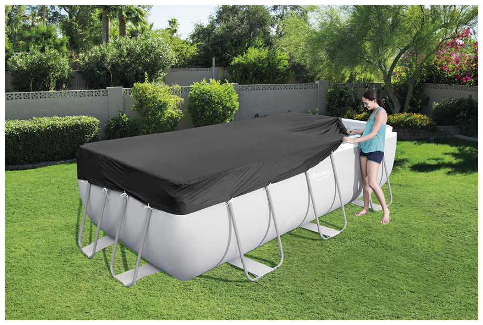 Κάλυμμα Πισίνας 58232 της Bestway κατάλληλο για πισίνες με διάσταση 412x201 και 404x201cm. Απαραίτητο αξεσουάρ για να προστατεύεται την πισίνας σας από τις εξωτερικές καιρικές συνθήκες, με τρύπες αποστράγγισης για να μην ψτο νερό, απαραίτητο για την προστασία της πισίνας σας!