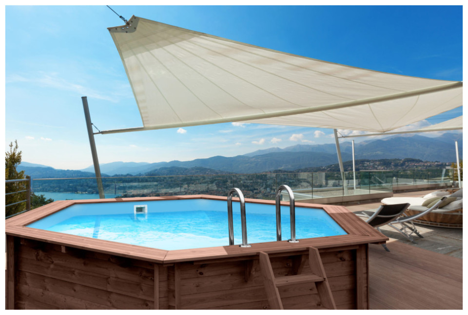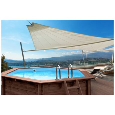 Πισίνα ξύλινη Santorini 355x307cm, ιδανική για οικογενειακή χρήση με εξαιρετική ποιότητα κατασκευής.