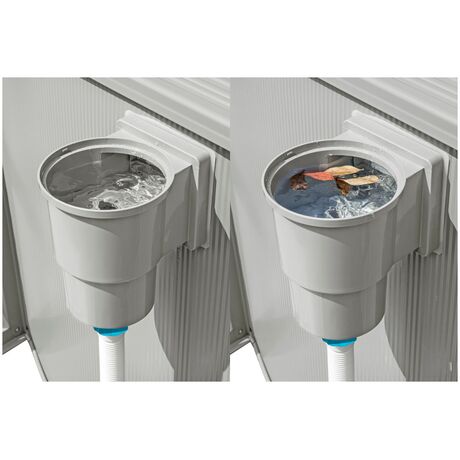 Το ενσωματωμένο επιφανειακό εξαφρηστήρι λειτουργεί με σύστημα φιλτραρίσματος για την απομάκρυνση των ανεπιθύμητων υπολειμμάτων και διατηρεί καθαρό το νερό.