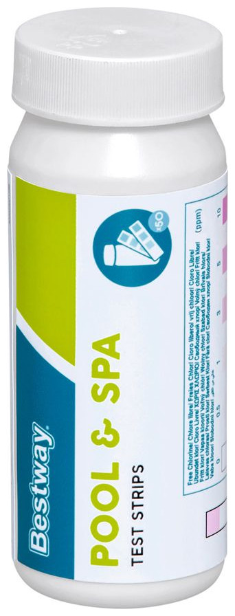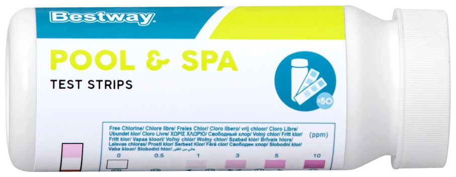 Ταινίες Μέτρησης Χλωρίου Test Strips για πισίνες και Spa της Bestway ιδανικές για να διατηρείτε τον έλεγχο των χημικών στην πισίνα σας. Στην Συσκευασία περιλαμβάνονται 50 τεμάχια δίνοντάς σας την ευκαιρία εκτός από το χλώριο να μετράτε την αλκαλικότητα 0 έως 240 ppm και το ph 6.2 έως 8.4 με άμεσα αποτελέσματα.