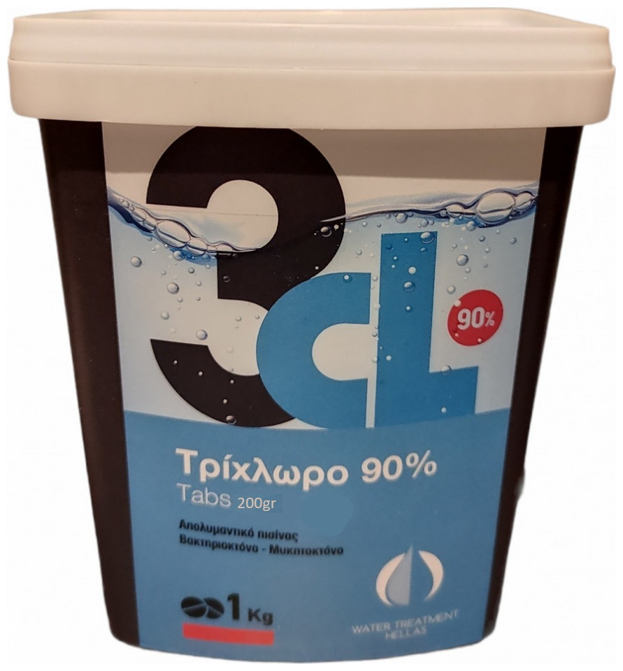Χλώριο Τρίχλωρο 3CL-90% 1Kg σε Ταμπλέτες 200gr Water Treatment Hellas