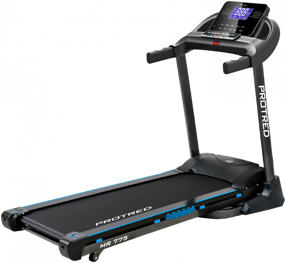 Διάδρομος Γυμναστικής 2.75hp Protred ιδανικός για οικιακή χρήση για να ικανοποιήσει και τους απαιτητικούς οικιακούς χρήστες. Διαθέτει κονσόλα με πολλαπλές ενδείξεις σχετικά με την εκγύμναση σας όπως τον χρόνο άσκησης, την απόσταση που έχετε διανύσει, τις θερμίδες που καταναλώσατε και τον καρδιακό παλμό. Ρυθμίστε την ταχύτητα με τα πλήκτρα άμεσης αλλαγής, μετρήστε το επίπεδο του καρδιακού παλμού σας μέσω των ειδικού αισθητήρων στις χειρολαβές ή επιλέξτε ένα από τα αποθηκευμένα προγράμματα για μία επιπλέον πρόκληση. Ενσωματωμένα στην κονσόλα θα βρείτε 2 ηχεία για να ακούτε την αγαπημένη σας μουσική. Σε αντίθεση με τους περισσότερους διαδρόμους της αγοράς, ο MR-775 δεν απαιτεί σύνδεση με καλώδια ή USB. Απλά ενεργοποιήστε το Bluetooth στο κινητό ή το tablet σας και παίξτε μουσική ασύρματα από δημοφιλείς εφαρμογές όπως το Spotify και άλλες! Ο MR-775 προσφέρει έναν εντυπωσιακό για την κατηγορία του τάπητα, διαστάσεων 45 x 140 cm, ώστε να μπορείτε να προπονηθείτε με ασφάλεια και χωρίς περιορισμό στην κίνησή, σας ακόμα και στις μεγαλύτερες ταχύτητες. Το βασικό μέρος είναι το σύστημα Soft Cushion, ένα ιδιαίτερα ενισχυμένο ελαστομερές στοιχείο στο κέντρο του δαπέδου. Σε κάθε του πλευρά είναι τοποθετημένο ένα μικρότερο στοιχείο με ελατήριο. Όπως οι περισσότεροι διάδρομοι της ProTred, έτσι και ο MR-775 διαθέτει σύστημα αναδίπλωσης Folding Drop System, που επιτρέπει στο διάδρομο σας να αναδιπλωθεί ώστε να μετακινηθεί και να αποθηκευτεί εύκολα. Ο διάδρομος αναδιπλώνεται εύκολα ακόμη και με ένα χέρι και ασφαλίζει με υδραυλικό αμορτισέρ. Κατόπιν μπορείτε χωρίς κόπο να τον μεταφέρετε και να κρατάτε το χώρο σας τακτοποιημένο. Ξεκινήστε αναδιπλώνοντας το διάδρομο, φροντίζοντας να έχει ασφαλίσει το υδραυλικό αμορτισέρ κλειδώματος. Τότε και μόνο τότε, τραβήξτε το επάνω μέρος του δαπέδου προς το μέρος σας, ώστε ο διάδρομος να στέκεται στις ρόδες μεταφοράς. Στη συνέχεια απλά μετακινήστε το διάδρομο στην επιθυμητή θέση, ακουμπήστε απαλά και απασφαλίστε το αμορτισέρ για να χαμηλώσει το δάπεδο στην αρχική του θέση.