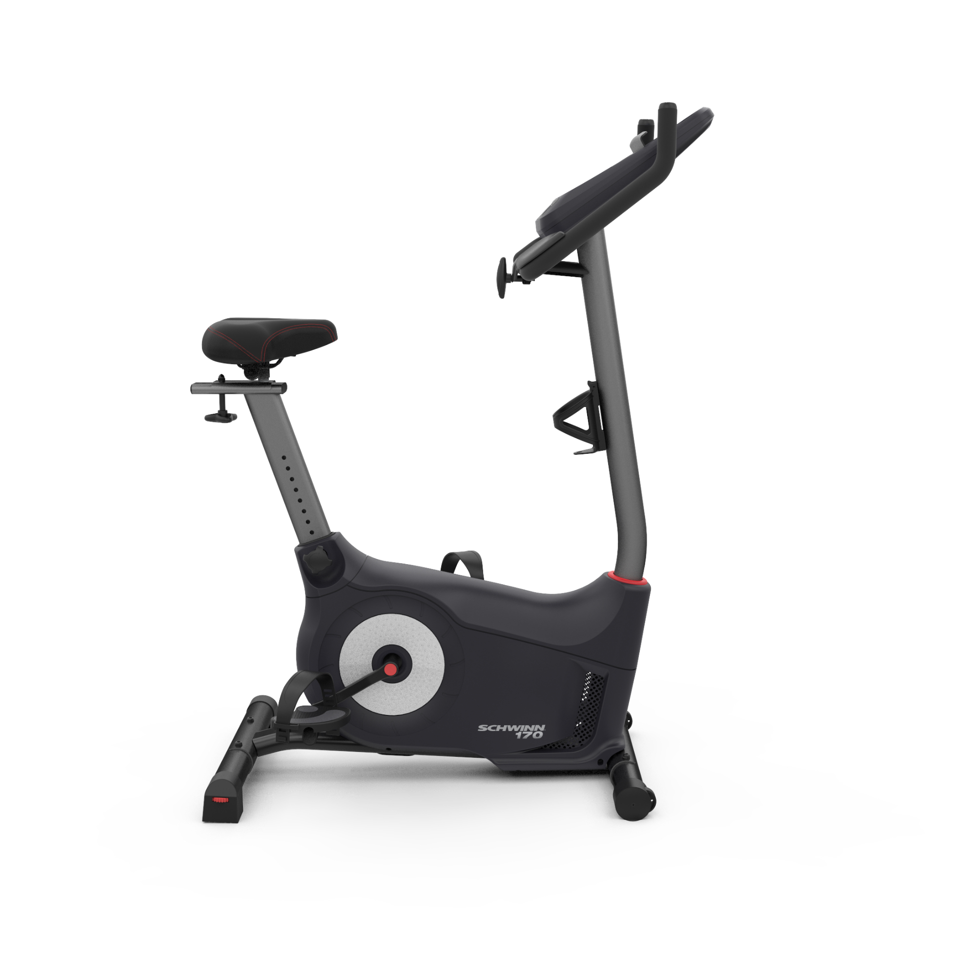 Όρθιο ποδήλατο γυμναστικής 570U Schwinn με δυνατότητα ρύθμισης του τιμονιού και της σέλας για να προσαρμόζεται στις ανάγκες κάθε χρήστη και να απολαμβάνετε μια άνετη εκγύμναση. Τοποθετήστε τα πόδια σας στα άνετα πετάλια και ρυθμίστε τους ιμάντες συγκράτησης για να ασφαλίσετε τα πόδια σας. Κρατήστε τις χειρολαβές τόσο για να να νιώσετε "ασφάλεια" κατά τη διάρκεια της προπόνησης διατηρώντας την ισορροπία σας όσο και για να μπορείτε να παρακολουθήσετε και τον καρδιακό σας παλμό. Στο εσωτερικό του θα βρείτε ένα στιβαρό δίσκο 10 κιλών για την ομαλή κίνηση κατά την διάρκεια της άσκησης, ενώ σας προσφέρει ηλεκτρική ρύθμιση της αντίστασης σε 25 επίπεδα. Η στιβαρή κατασκευή πλαισίου σας εγγυάται μέγιστη αντοχή χρήστη έως και 136 κιλά. Με δύο LCD οθόνες οι οποίες απεικονίζουν τα δεδομένα της άσκησης και προσφέρει πληροφορίες όπως ταχύτητα, χρόνος, απόσταση, καύση θερμίδων, καρδιακός παλμός, watts και περιστροφές ανά λεπτό. Η κονσόλα σας δίνει επίσης τη δυνατότητα να επιλέξετε ανάμεσα σε 12 προ-εγκατεστημένα προγράμματα, 4 χρήστη, 2 τεστ φυσικής κατάστασης, 9 καρδιακού παλμού για μία ακόμη μεγαλύτερη πρόκληση. Στο κάτω μέρος της κονσόλας θα βρείτε ηχεία μέσω τον οποίων μπορείτε να ακούτε την αγαπημένη σας μουσική η μετάδοση της οποίας μπορεί να γίνει είτε με την θύρα USB που διαθέτει. Στο ποδήλατο αυτό έχει δοθεί ιδιαίτερη προσοχή στην κατασκευή, ώστε να προσφέρεται ιδιαίτερη άνεση σε κάθε σωματότυπο. Διαθέτει επένδυση και ρύθμιση γωνίας στο τιμόνι για μια πιο άνετη στάση κατά την προπόνησή σας.. Το κάθισμα είναι άνετο καθώς έχει εσωτερική επένδυση από αφρώδη υλικό ρυθμίζεται κατά μήκος αλλά και κατά ύψος καθιστώντας το έτσι εύκολα προσαρμόσιμο σε κάθε αθλούμενο. Με ένα δεύτερο σύστημα, ρυθμίστε τη σέλα και κατά μήκος για να τη φέρετε στην κατάλληλη θέση για εσάς.