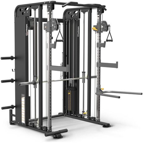 Η Διπλή Ρυθμιζόμενη Τροχαλία & Smith Impulse ES2100 είναι η ιδανική επιλογή για επαγγελματικές εγκαταστάσεις γυμναστικής. Κατασκευασμένη από την Impulse, προσφέρει εξαιρετική ποιότητα και αντοχή. Με διαστάσεις 192,5x144,7x218,0 cm και συνολικό βάρος 186 Kg, είναι ιδανική για ελαφριά εμπορική χρήση. Το σύστημα τροχαλιών επιτρέπει εύκολη ρύθμιση με το ένα χέρι, ενώ η αναλογία μετάδοσης συρματόσχοινου 1:2 προσφέρει μέγιστη διαδρομή 232 cm. Περιλαμβάνει αξεσουάρ όπως λαβές, σχοινί έλξεων και χερούλια βυθίσων, εξασφαλίζοντας ποικιλία ασκήσεων. Οι οδηγοί με επικάλυψη σκληρού χρωμίου προσφέρουν επιπλέον αντοχή και διάρκεια. Η αποθήκευση εξαρτημάτων στο πίσω μέρος διευκολύνει την οργάνωση του χώρου σας. Με 33 θέσεις ρύθμισης ύψους, είναι κατάλληλη για κάθε χρήστη. Η Διπλή Ρυθμιζόμενη Τροχαλία είναι η τέλεια προσθήκη σε κάθε γυμναστήριο.