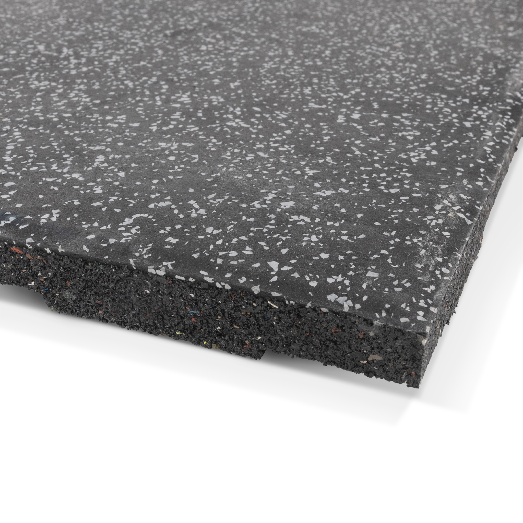 Το επαγγελματικό δάπεδο γυμναστηρίου είναι κατασκευασμένο από SBR, δηλαδή ανακυκλωμένο λάστιχο, αλλά και EPDM δηλαδή πρωτογενές λάστιχο το οποίο χαρακτηρίζεται για την αντοχή του. Το πάχος 2 εκατοστών είναι ικανό να προστατέψει το δάπεδο σας και τον εξοπλισμό. Η κατασκευή η οποία αποτελείται από 2 στρώσεις. Η πρώτη στρώση αποτελείται από κόκκους ανακυκλωμένου λάστιχου που μετά από μια επεξεργασία θέρμανσης και κόλλησης, δημιουργώντας ένα συμπαγές σώμα πάχους 18,5 χιλιοστών. Η δεύτερη στρώση 1,5 χιλιοστών που βρίσκεται στην επιφάνεια αποτελείται από ρολό με EPDM 30% (σε μορφή χρωματιστών flecks) προσδίδοντας μια λεία επιφάνεια που βελτιώνει την αισθητική αλλά και την ευκολία καθαρισμού. Όσο πιο υψηλό το ποσοστό EPDM τόσο πιο ανθεκτικό γίνεται το πάτωμα.