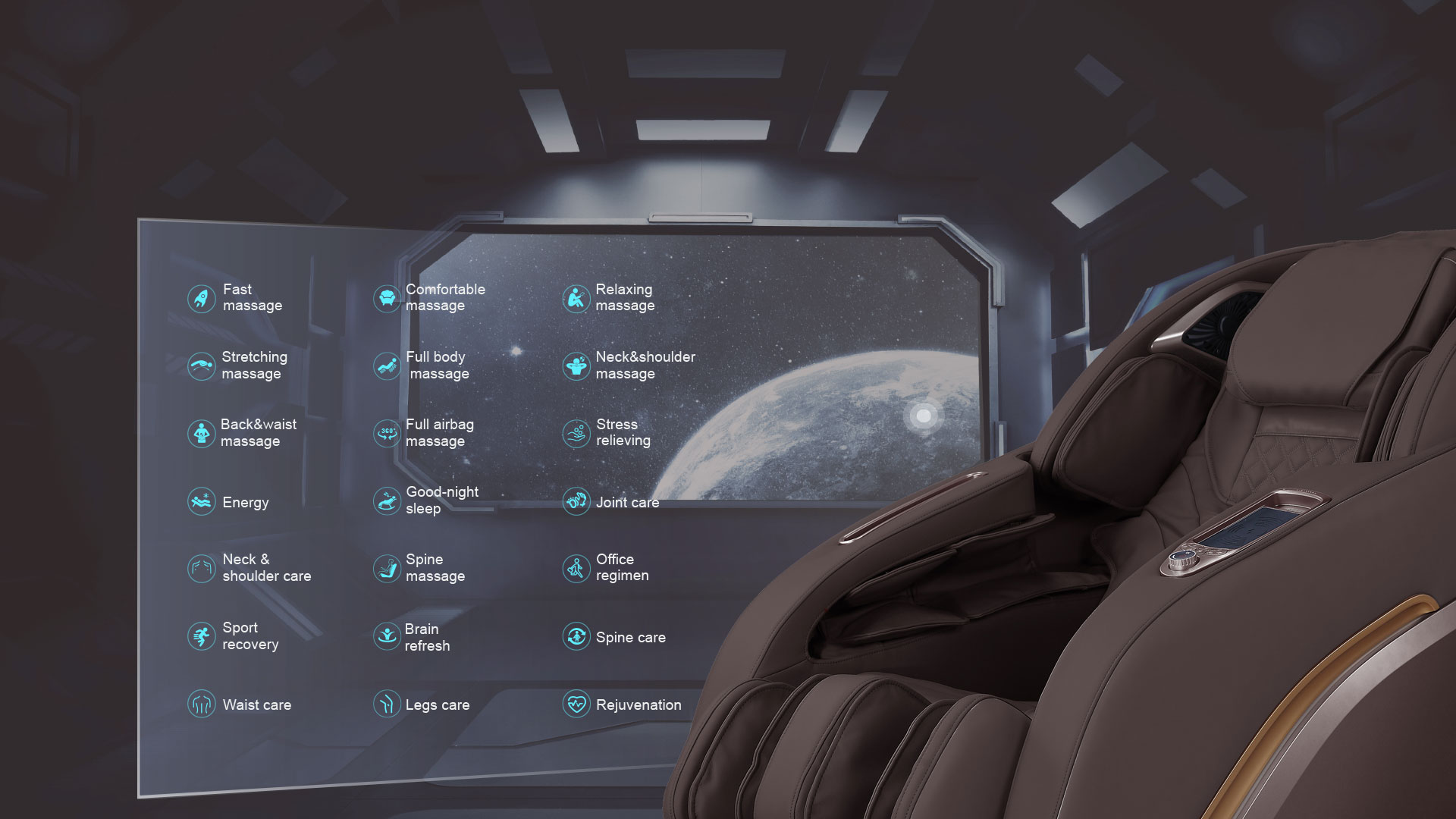 Βασισμένο στην βιο-μηχανική, την εργονομία και το μοντέλο φυσιοθεραπείας, που στοχεύει στα χαρακτηριστικά του ανθρώπινου σκελετού, σε συνδυασμό με μηδενική ισχύ, μηδενικό χώρο, μασάζ με μακρύτερη καμπύλη ράγας και μοντέρνα φυσική έκταση με 26 αερόσακους. Θα σας προσφέρει μια κορυφαία εμπειρία μασάζ όταν είστε στο σπίτι, ενισχύοντας την υγεία και τη δραστηριότητά σας κάθε μέρα.