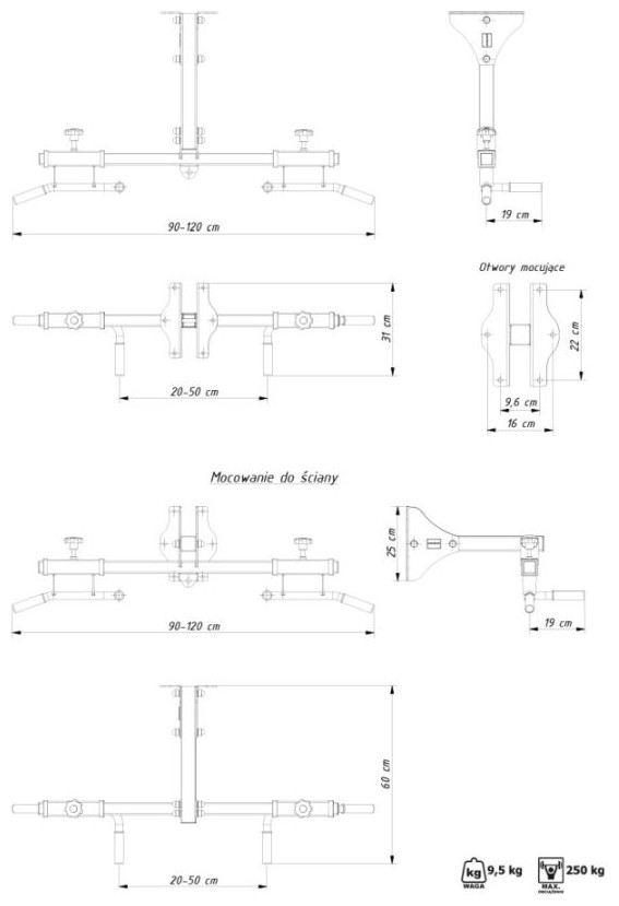 Μονόζυγο Τοίχου της Marbo-Sport MS-D202 με ρυθμιζόμενες λαβές σε διαφορετικές αποστάσεις και με ενσωματωμένο κρίκο για να κρεμάσετε ένα σάκο πυγμαχίας, το Μονόζυγο Τοίχου MS-D202 ενεργοποιεί τους μύες της πλάτης και των δικεφάλων, κάτι που το κάνει αναπόσπαστο μέλος κάθε γυμναστηρίου! Λόγω της ειδικής σχεδίασής του, το MS-D202 μπορεί να τοποθετηθεί τόσο στον τοίχο όσο και στην οροφή. Για να το κάνετε αυτό, απλά ξεβιδώστε τις βίδες, επανατοποθετήστε τη μπάρα και είστε έτοιμοι! Σε αυτό το μονόζυγο τοίχου μπορείτε να εκτελέσετε ασκήσεις που εκμεταλλεύονται τις έξτρα παραλλαγές λαβών (παράλληλη, πλάγια, ίσια, συμμετρική, ασύμμετρη) για μεγαλύτερη ποικιλία. Είναι επίσης ιδανική κατασκευή για χρήση με κρίκους γυμναστικής, ζώνες αντίστασης, ή σύστημα TRX. Οι λαβές μπορούν να ρυθμιστούν σε οποιοδήποτε σημείο από 20 έως 50 εκατοστά σε κλειστή λαβή και από 90 έως 120 εκατοστά σε ανοιχτή λαβή. Αυτή η λύση σας προσφέρει την δυνατότητα να διαφοροποιήσετε την άσκηση της πλάτης και των δικέφαλων. Οι Παχιές λαβές από άοσμο καουτσούκ έχουν σχεδιαστεί ειδικά για το εν λόγω προϊόν, ιδανικά για τη διάμετρο της συγκεκριμένης ράβδου. Χάρη σε αυτές τις αντιολισθητικές λαβές, η προπόνηση είναι ασφαλής και άνετη.