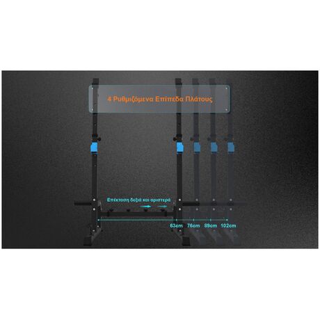 Ανθεκτικοί και αξιόπιστοι, οι Ορθοστάτες Pegasus® JX-855 προσφέρουν ασφάλεια και σιγουριά κατά την εκτέλεση ενός τεράστιου αριθμού ασκήσεων με βάρη. Μπορείτε πολύ εύκολα να ρυθμίσετε κατά ύψος όχι μόνο τη θέση των ορθοστατών σε 5 θέσεις, αλλά και τα στοπ ασφαλείας για την μπάρα σας σε 3 θέσεις, έτσι ώστε να φέρετε την προπόνηση στα μέτρα σας. Ρυθμίστε το εύρος των ορθοστατών σε 4 διαφορετικές θέσεις ανάλογα με το σωματότυπο σας και την μπάρα που χρησιμοποιείτε. Το εσωτερικό εύρος της μπάρας που είναι συμβατή με τους ορθοστάτες κυμαίνεται μεταξύ 73.5 cm και 120.5 cm. Εκτελέστε τη δημοφιλή άσκηση βυθίσεων χάρη στις δύο ενσωματωμένες λαβές στο πίσω μέρος των ορθοστατών. Στο μπροστινό μέρος θα βρείτε 2 λαβές για να εκτελέσετε ασκήσεις push up. Σε κάθε πλευρά των ορθοστατών υπάρχει μία υποδοχή όπου μπορείτε να αποθηκεύσετε δίσκους βάρους ώστε να κρατάτε το χώρο σας τακτοποιημένο. Συνδυάστε τους ορθοστάτες σας με έναν από τους πάγκους μας και αποκτήστε πρόσβαση σε ακόμη περισσότερες ασκήσεις με ελεύθερα βάρη ή χωρίς βάρη.