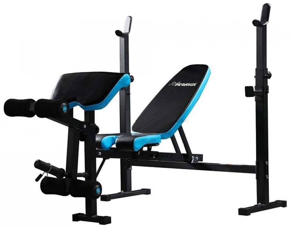Πολυπάγκος βαρών της Pegasus JX-DS610 μια συμπαγή και ευέλικτη μονάδα με πάγκο και ορθοστάτες ιδανικός για να εκτελείτε ασκήσεις όπως πιέσεις σε πάγκο με μπάρα υπο διαφορετικές κλίσεις, πιέσεις ώμων με μπάρα, πιέσεις αλτήρων σε πάγκο, εκτάσεις αλτήρων σε πάγκο, κάμψεις δικεφάλων και ασκήσεις ποδιών. Η στιβαρή κατασκευή του σας εγγυάται ότι θα εκτελείτε τις παραπάνω ασκήσεις με μέγιστη ασφάλεια, ακόμα και στις πιο απαιτητικές προπονήσεις σας, χάρη στην στιβαρή κατασκευή του. Με δυνατότητα αναδίπλωσης μετά από κάθε χρήση για εξοικονόμηση χώρου. Το ενσωματωμένο μαξιλάρι δικεφάλων ρυθμίζετε κατά ύψος σε 3 θέσεις για να προσαρμοστεί στις ανάγκες κάθε χρήστη, εκτελώντας με άνεση κάψεις δικεφάλων με αλτήρες ή μπάρα. Τοποθετήστε δίσκους βάρους στην υποδοχή της λειτουργίας εκτάσεων ποδιών και εκτελέστε τη σχετική άσκηση. Η υποδοχή βάρους είναι συμβατή με ολυμπιακούς αλλά και απλούς δίσκους. Η πλάτη του JX-DS610 ρυθμίζεται εύκολα σε 9 θέσεις με έναν εύχρηστο μοχλό, συγκεκριμένα σε γωνίες 0, 20, 30, 35, 40, 45, 50, 55 και 60 μοίρες. Εκτός από την πλάτη του πάγκου, ρυθμίζεται και το κάθισμα. Η ρύθμιση γίνεται σε 4 θέσεις απλά με την αφαίρεση ενός πύρρου. Οι δύο Ορθοστάτες ρυθμίζονται σε 5 θέσεις κατά ύψος, ενώ θα βρείτε και δύο Στοπ Ασφαλείας που επίσης ρυθμίζονται σε 2 θέσεις. Ο πάγκος διαθέτει μαξιλάρια υψηλής πυκνότητας, πάχους 6cm, για βέλτιστη άνεση και αντοχή. Τα αφρώδη πάχους 10 cm προσφέρουν εξαιρετική αίσθηση στις αρθρώσεις σας κατά την άσκηση. Μετά το τέλος της προπόνησης, μπορείτε να αναδιπλώσετε τον πάγκο σας έτσι ώστε να εξοικονομήσετε χώρο! Η αναδίπλωση γίνεται πολύ εύκολα με τη χρήση ενός πύρρου στη βάση που βρίσκεται ανάμεσα στους ορθοστάτες. Με τον ίδιο πύρρο, ο πάγκος ασφαλίζει στη νέα του θέση.