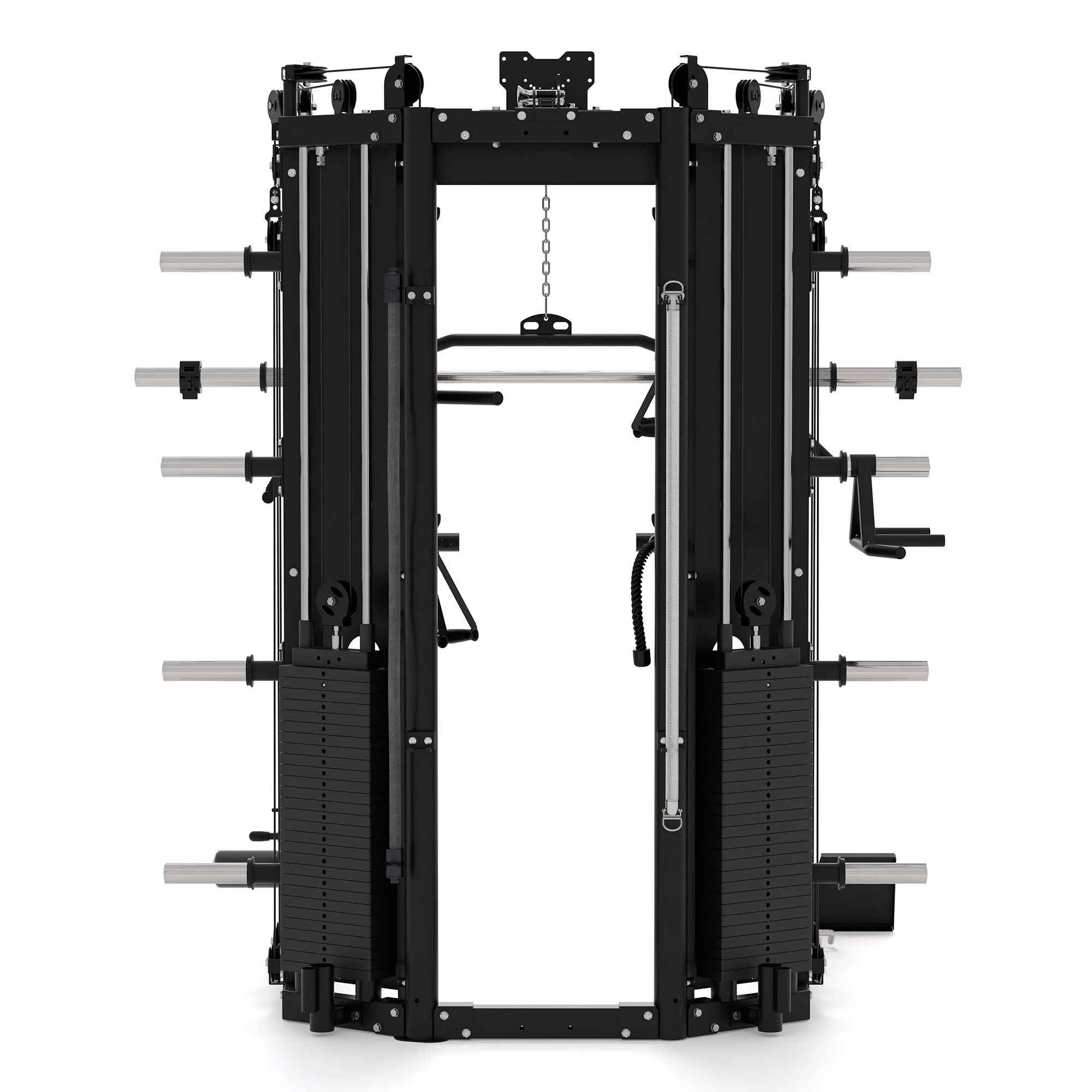 - Πλατφόρμα πιέσεων ποδιών, Εξάρτημα σταθεροποίησης ποδιών για τροχαλία πλάτης, Εξάρτημα σταθεροποίησης ποδιών για έλξεις κωπηλατικής, Βάση αποθήκευσης μπάρας ολυμπιακού τύπου, 2 Σφιγκτήρες ολυμπιακής μπάρας, 2 Αλυσίδες προέκτασης, 8 Βάσεις αποθήκευσης δίσκων 50mm, ίσια μικρή μπάρα, τριγωνική λαβή, κ.ά.