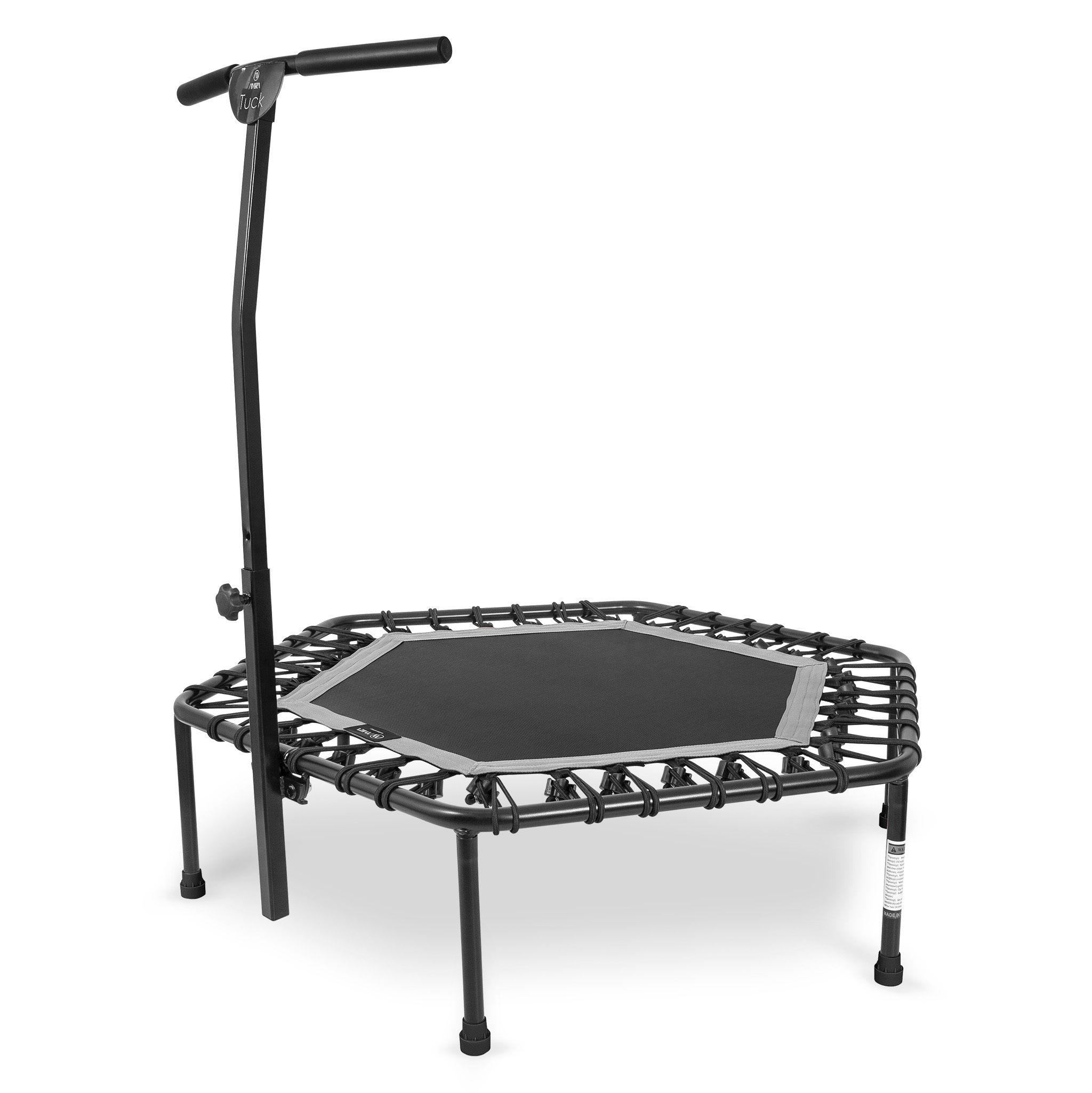 Ανακαλύψτε το εξάγωνο τραμπολίνο με λαβή στήριξης Tuck σε γκρι χρώμα, ιδανικό για ασφαλή και διασκεδαστική άσκηση. Με διαστάσεις 111,5x124cm και ύψος 117~151cm, αυτό το τραμπολίνο προσφέρει εξαιρετική σταθερότητα και υποστηρίζει μέγιστο βάρος χρήστη έως 130kg. Κατασκευασμένο από ανθεκτικά υλικά, διαθέτει σκελετό διαμέτρου 28,6mm και πόδια 25,4mm, εξασφαλίζοντας μακροχρόνια χρήση. Η λαβή στήριξης προσφέρει επιπλέον ασφάλεια κατά τη διάρκεια των άλματος, ενώ οι 36 ελατήρια παρέχουν άριστη ελαστικότητα. Ιδανικό για όλες τις ηλικίες, το τραμπολίνο αυτό είναι η τέλεια επιλογή για γυμναστική στο σπίτι ή στον κήπο.