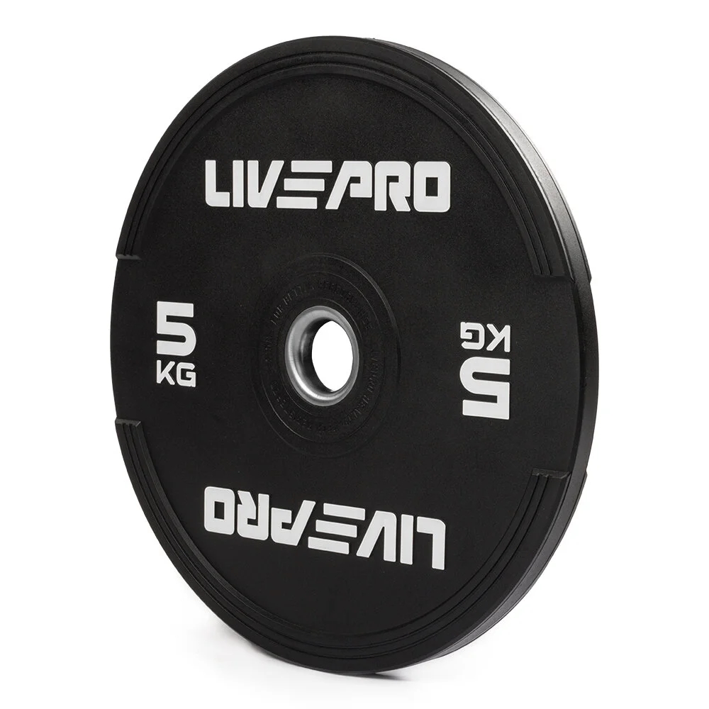 Οι έγχρωμοι δίσκοι προπόνησης από καουτσούκ της Livepro διαμορφώνονται σε υψηλές θερμοκρασίες με νέο τύπου λάστιχου πάχους 24-88mm. Είναι αθόρυβοι και δεν φθείρουν το πάτωμα. Αυτοί οι δίσκοι είναι εξαιρετικά αδιάβροχοι και ανθεκτικοί στη φθορά. Ο εσωτερικός δακτύλιος από ανοξείδωτο χάλυβα είναι εύκολος να τοποθετηθεί και να αφαιρεθεί από μια μπάρα. Πέρασε επιτυχώς χωρίς ζημιές μια αυστηρή δοκιμή πτώσης.