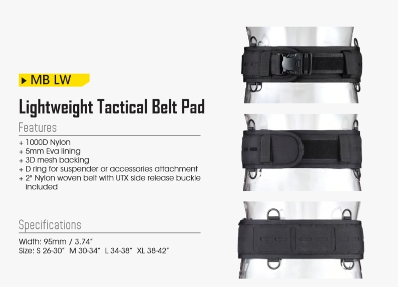 Επιχειρησιακή ζώνη με μαλακό γέμισμα. Κατασκευασμένη από συνθετική ίνα με αδιάβροχη πλέξη 1000D , εξαιρετικά ανθεκτική, πραγματικά πολύ ελαφριά και με μεγάλη αντοχή στην φθορά. Ιδανική για όλες τις καιρικές συνθήκες. Διαθέτει σύστημα ανάρτησης MOLLE κομμένο με Laser. Είναι εξαιρετικά ανθεκτικό, κατασκευασμένο από νάιλον 1000D, λεπτή μεμβράνη και φόδρα ώστε να προσφέρει την εξαιρετική επεκτασιμότητα για την ανάρτηση θηκών και εργαλείων. Συμπεριλαμβάνεται ζώνη πλάτους 5 εκατοστών με πόρπη γρήγορης απελευθέρωσης. - Είναι συμβατή με ζώνη 2,25" Cobra® (Πωλείται ξεχωριστά) για μεγαλύτερη σταθερότητα και άνεση - Ρυθμιζόμενο μήκος και ικανότητα να χρησιμοποιηθεί ανεξάρτητα. Πόρπη UTX που ασφαλίζει σε 3 σημεία. Αποτρέπει ατυχή απασφάλιση. Διαθέτει ρύθμιση μήκους και δεν "φοβάται" το πολύπλοκο εξωτερικό περιβάλλον. Μοναδικά σχεδιασμένοι κρίκοι σε σχήμα " D " - Κατασκευασμένοι από ελαφριά και ανθεκτικά υλικά POM - Τοποθετημένοι και στις δύο πλευρές τις ζώνης. - Είναι συμβατοί με τιράντες ξεκούρασης για μείωση της κόπωσης λόγω βάρους. - Είναι διαθέσιμοι για την ανάρτηση εργαλείων, όπως φακοί, κλειδιά, θήκες για αντιασφυξιογόνες μάσκες κ.α. Σύστημα ανάρτησης και μεταφοράς εξοπλισμού που αναπνέει. Ο συνδυασμός του τρισδιάστατου διχτυωτού μαλακού επιθέματος και του διάτρητου μαλακού υλικού EVA μπορεί και μοιράζει την πίεση της ζώνης για να προσφέρει μεγαλύτερη εργονομία και άνεση. Περιοχή ασφάλισης με υλικό τύπου Βέλκρο για καλύτερο δέσιμο και ασφάλεια. Εφαρμόζει τέλεια και αγκαλιάζει την ζώνη την μέση και την στολή σας.
