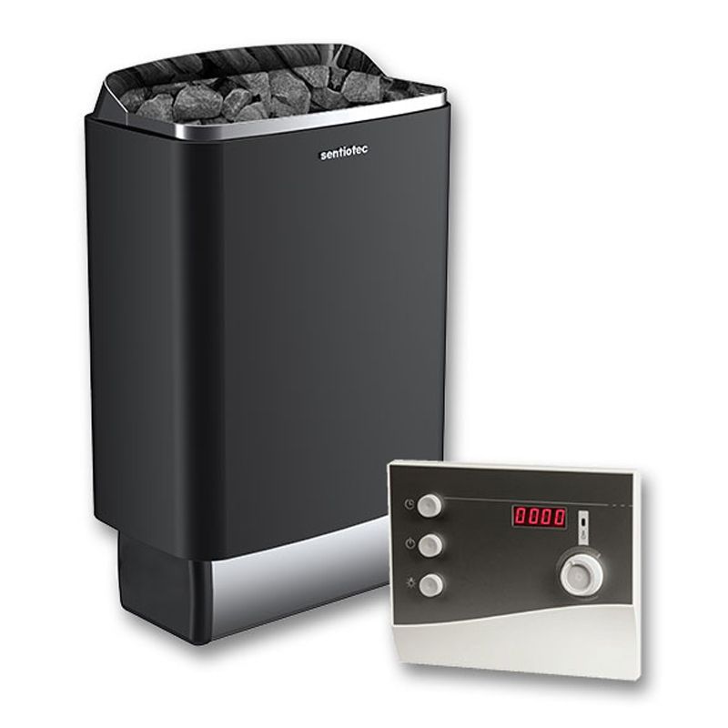 Το καλύτερο μοντέλο από την σειρά με εύχρηστες σόμπες της Sentiotec, διαθέτει ισχύ 9 kW και είναι εξοπλισμένο με εξωτερικό πάνελ ελέγχου για άνετη ρύθμιση της θερμοκρασίας στη σάουνα, σύμφωνα με τις προτιμήσεις σας! Μια σόμπα με καθαρό και κομψό σχεδιασμό, εύκολη χρήση και πρακτικά χαρακτηριστικά που εξασφαλίζουν την επαρκή θέρμανση ακόμα και σε μεγαλύτερες φινλανδικές σάουνες. Λίγο μετά την εκκίνηση της σόμπας, σε μικρές σάουνες όπως η Heikki, φτάνει τους 100°C σε μόλις 15-20 λεπτά. Η σόμπα διαθέτει ψηφιακή οθόνη, διακόπτη ισχύος, θερμοστάτη με εύρος θερμοκρασίας 40-125 °C και αισθητήρα λειτουργίας και ασφάλειας (139 °C). Επιπλέον, παρέχεται η δυνατότητα σύνδεσης για έλεγχο του φωτισμού και χρονοδιακόπτης ο οποίος επιτρέπει τη ρύθμιση έναρξης σε 0-4 ώρες ή την καθυστέρεση έναρξης από 15 λεπτά έως 23 ώρες και 45 λεπτά. Απαραίτητα αξεσουάρ για τη χρήση της σόμπας είναι το καλώδιο τροφοδοσίας του απαιτούμενου μήκους και ένα καλώδιο για σύνδεση στο εξωτερικό πάνελ, τα οποία πωλούνται ξεχωριστά, καθώς επίσης και οι πέτρες λάβας.