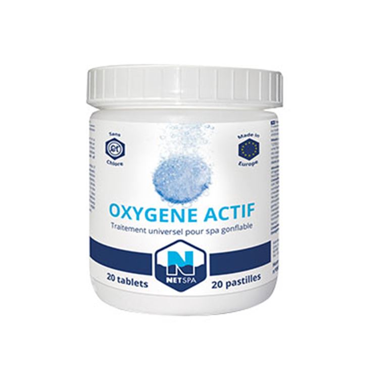 Μοναδικo, all-in-one δεν είναι διαθέσιμο πουθενά αλλού! Το ενεργό οξυγόνο NetSpa είναι ένα ισχυρό απολυμαντικό που σας επιτρέπει να απομακρύνετε βακτήρια και άλλους μικροοργανισμούς από το νερό του υδρομασάζ σας. Η ποσότητα που ενδείκνυται να χρησιμοποιείται είναι 1 δισκίο μια φορά την εβδομάδα. Το κουτί περιλαμβάνει 20 δισκία των 20gr και έχει εγγυημένη προστασία των τοιχωμάτων του SPA. Χωρίς χλωρίωση. Είναι κατασκευασμένο στην Ευρώπη σύμφωνα με τα υψηλότερα πρότυπα ποιότητας. Απαραίτητο αξεσουάρ για όσους αγαπούν το spa και τις στιγμές ξεκούρασης και χαλάρωσης.