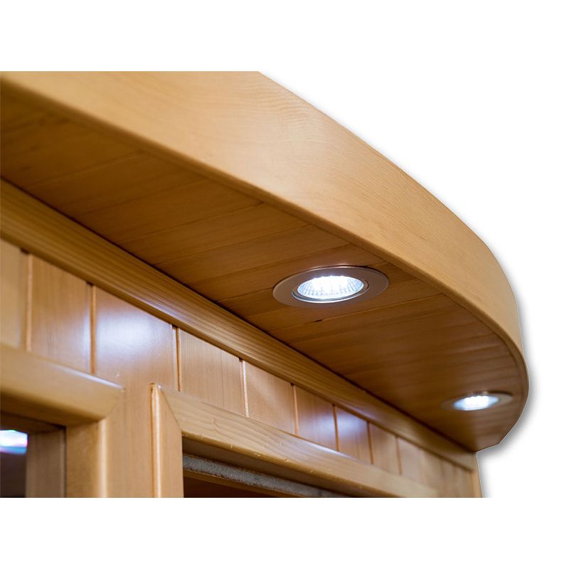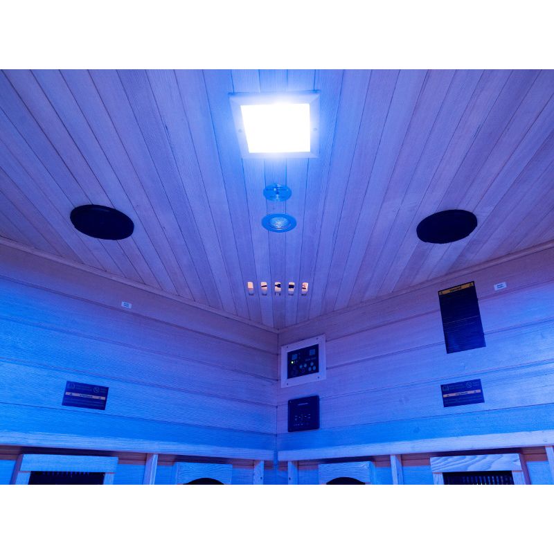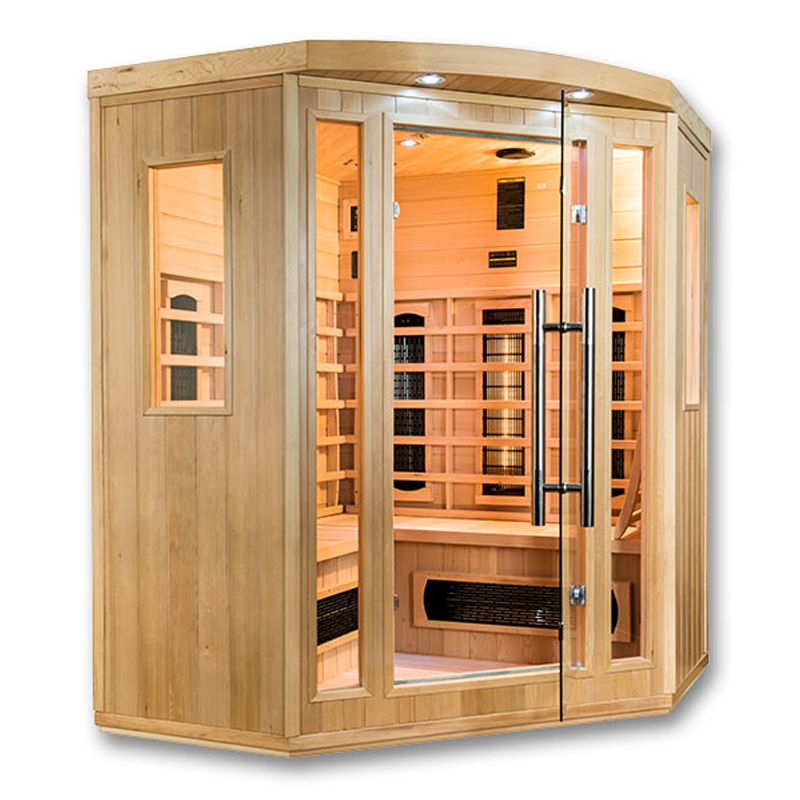 Η σάουνα υπερύθρων Salome της Τσέχικης εταιρείας Mountfield, είναι κατάλληλη για 3-4 άτομα με διαστάσεις 150 x 150 x 190 εκατοστά και κατανάλωση ενέργειας 2.34 kW. Είναι κατασκευασμένη από ξύλο καναδικής τσούγκας το οποίο έχει εξαιρετικές θερμομονωτικές ιδιότητες, δεν περιέχει ρητίνη και είναι άοσμο, ενώ ο εργονομικός σχεδιασμός της σάουνας, υπόσχεται να μεταμορφώσει τη διαμονή σας σε μία νέα εμπειρία χαλάρωσης. Διαθέτει υψηλής ποιότητας εξοπλισμό, όπως για παράδειγμα στήριγμα για την πλάτη, αισθητήρα θερμοκρασίας, εσωτερικό πίνακα ελέγχου, ιονιστή, ραδιόφωνο / mp3 με τηλεχειριστήριο και δυνατότητα χρήσης USB, ράφι για τα ποτά σας και κρεμάστρα για την πετσέτα, ενώ η λειτουργία της πραγματοποιείτε σε δίκτυο τάσης 230/50 V/Hz. Εξοπλισμένη με φωτισμό για φωτοθεραπεία προσφέρει την δυνατότητα επιλογής ενός χρωματικού τόνου για να τελειοποιήσετε την ατμόσφαιρα, σύμφωνα με τη διάθεσή σας. Κάθε χρώμα έχει σημαντική επίδραση στην ενέργεια του σώματός μας. Για παράδειγμα, το κίτρινο μας ενεργοποιεί, το πράσινο εναρμονίζει, το πορτοκαλί δημιουργεί μία αίσθηση ασφάλειας και χαράς, το λευκό ενεργοποιεί, το γαλάζιο καταπραΰνει, το μωβ βοηθάει στην αϋπνία και το κόκκινο ανακουφίζει από την κατάθλιψη. Ο ιονιστής εμπλουτίζει τον αέρα που αναπνέουμε, έτσι, η φρεσκάδα και η καθαρότητα που προκύπτει μοιάζει εκπληκτικά με τον αέρα ψηλά στα βουνά ή τη θάλασσα. Παράλληλα, καταστρέφει αποτελεσματικά τους μικροοργανισμούς και περιλαμβάνει μια γεννήτρια όζοντος, η οποία απολυμαίνει και δρα θετικά στο ανθρώπινο σώμα! Οι κεραμικοί αλλά και οι κόκκινου φωτός θερμαντήρες πετυχαίνουν πολύ γρήγορα την επιθυμητή θερμοκρασία του εσωτερικού θαλάμου. Συνεπώς, απαιτούνται λιγότεροι εκπομποί. Όσον αφορά τους κεραμικούς, το κόστος αγοράς τους είναι χαμηλότερο απ' ότι για άλλους τύπους θερμαντήρων. Η διάρκεια ζωής και των δύο είναι περίπου 8.000 ώρες σε κανονική λειτουργία (περίπου 45 λεπτά/3 φορές την εβδομάδα) που σημαίνει περίπου 60 χρόνια. Οι θερμαντήρες κόκκινου φωτός είναι κατασκευασμένοι από σωλήνες γυάλινου χαλαζία, οι οποίοι εκπέμπουν έντονη ακτινοβολούμενη θερμότητα και φως, συνεπώς, ενισχύουν όλα τα ευεργετικά θεραπευτικά αποτελέσματα.