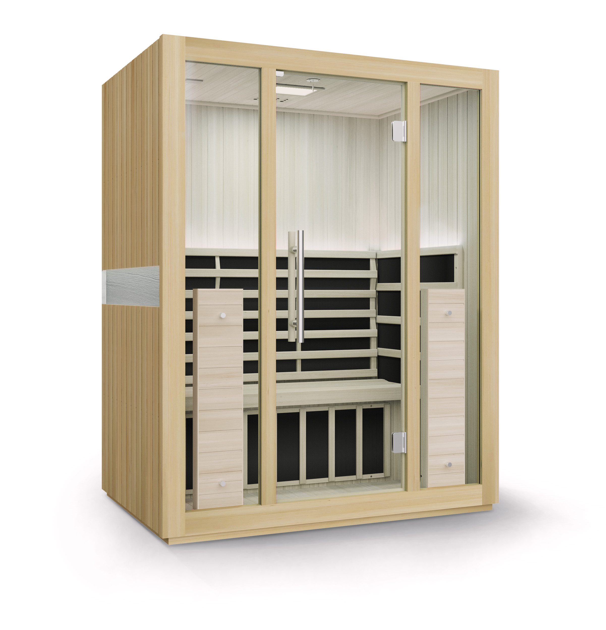 Η Full Spectrum S-08 της Amila είναι μια καταπληκτική σάουνα υπερύθρων πλήρους φάσματος κατασκευασμένη από ξύλο καναδικού πεύκου Hemlock το οποίο προσφέρει ομοιόμορφη κατανομή της θερμότητας, και εξοπλισμένη με τελευταία τεχνολογία! Το υπέρυθρο φάσμα χωρίζεται σε 3 μήκη κύματος, το κοντινό, το μεσαίο και το μακρινό τα οποία δίνουν διαφορετικά οφέλη στον οργανισμό. Το κοντινό εισχωρεί στο σώμα, αυξάνει τη θερμοκρασία και δημιουργεί εφίδρωση. Το μεσαίο αυξάνει την κυκλοφορία του αίματος απελευθερώνοντας περισσότερο οξυγόνο βοηθώντας τις τραυματισμένες περιοχές ενώ βοηθάει και στο μεταβολισμό. Τέλος το μακρινό κύμα βελτιώνει το μεταβολισμό προσφέροντας καλύτερη καύση του λίπους και αποτοξίνωση.