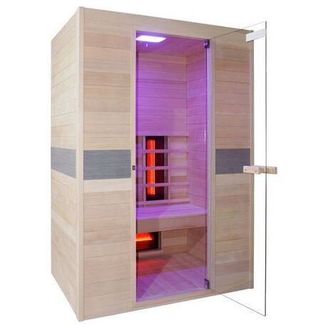 Η Jade 2 ατόμων της Interline είναι μια καταπληκτική σάουνα υπερύθρων κατασκευασμένη από ξύλο καναδικού πεύκου Hemloc το οποίο προσφέρει ομοιόμορφη κατανομή της θερμότητας, και εξοπλισμένη με τελευταία τεχνολογία! Με μικρές διαστάσεις δεν καταλαμβάνει πολύ χώρο και πάγκου πλάτους 45cm είναι κατάλληλη για 2 άτομα! Η εκκίνηση της λειτουργίας είναι απλή και ο χρόνος προετοιμασίας που χρειάζεται είναι μόλις 10 λεπτά ενώ η κατανομή της θερμότητας γίνεται με 5 υπέρυθρες λάμπες! Διαθέτει πίνακα ελέγχου με MP3 Player και ενσωματωμένο Bluetooth και ηχείο, καθώς και αισθητήρα θερμοκρασίας και συρόμενους αεραγωγούς! Η απαιτούμενη ισχύς είναι 2100W και η σύνδεση μπορεί να γίνει σε μια κοινή οικιακή πρίζα που διαθέτει γείωση. Υπάρχει Led εσωτερικός φωτισμός ο οποίος σας δίνεται η δυνατότητα τα αλλάξετε το χρώμα του. Η πόρτα αποτελείται από γυαλί ασφαλείας 6mm για καλύτερη και πιο ανάλαφρη αίσθηση. Διαθέτει manual με οδηγίες χρήσης και οδηγίες συναρμολόγησης!