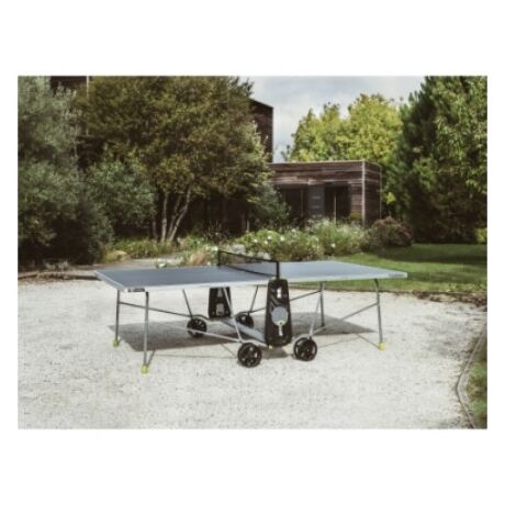 Τραπέζι ping pong Cornilleau Challenger εξωτερικού χώρου από την εταιρεία Amila. Πρόκειται για ένα πτυσσόμενο τραπέζι εύκολο στην αποθήκευση καθώς μικραίνει ο όγκος του. Επίσης μπορείτε να διπλώσετε μόνο την μία πλευρά του, άρα να προπονηθείτε χωρίς να υπάρχει αντίπαλος. Είναι κατασκευασμένο από αλουζίνιο, ένα ανθεκτικό στη διάβρωση κράμα που περιέχει χάλυβα, αλουμίνιο και ψευδάργυρο, γνωστό για την εξαιρετική του ανθεκτικότητα. Ο σκελετός του είναι περασμένος με ηλεκτροστατική βαφή ενώ η επιφάνεια παιξίματος έχει αντιθαμβωτικό φινίρισμα που την καθιστά ανθεκτική σε γρατζουνιές και ξεθώριασμα του χρώματος. Υπάρχουν ενσωματωμένες θήκες στα πλαϊνά πάνελ που μπορούν να φιλοξενήσουν έως 2 ρακέτες και 4 μπαλάκια. Διαθέτει ρυθμιζόμενα πόδια, κεντρικό κλείδωμα, χειριζόμενο με το ένα χέρι, δίχτυ μόνιμο και εύκολα ρυθμιζόμενο καθώς και μεγάλους τροχούς για την εύκολη μετακίνηση του. Στιβαρός σχεδιασμός, σταθερότητα ακόμα και σε ανώμαλα εδάφη. Η ποιότητα παιχνιδιού του εξωτερικού τραπεζιού Ping Pong θα καλύψει τους παίκτες όλων των επιπέδων.