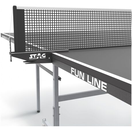 Το τραπέζι Ping Pong εσωτερικού χώρου Fun 15 της Stag ανήκει στην κατηγορία των entry level τραπεζιών της εταιρίας χωρίς όμως να στερείται την ποιότητα της εταιρίας. Ο τύπος του τραπεζιού είναι των 2 ξεχωριστών φύλλων τα οποία μπορούν να μεταφερθούν στον χώρο εύκολα με τις ρόδες που διαθέτουν. Διαθέτει κλείδωμα ασφαλείας για να μπορείτε να σηκώνεται όρθια τα φύλλα και να αποθηκεύετε το τραπέζι με ασφάλεια. Το τραπέζι Fun 15 είναι ένα από τα καλύτερα τραπέζια για να ξεκινήσετε να παίζετε Ping Pong.