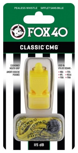Σφυρίχτρα Κίτρινη με κορδόνι FOX40 Κωδ. 96030208, πλαστική με σχεδιασμό 3 αεροθαλάμων και ένταση 115 dB για καλύτερη ακουστική στον χώρο που βρίσκεστε! Διαθέτει κρίκο στην άκρη για να προσαρμόζεται με κορδόνι ή και να χρησιμοποιείται σαν μπρελόκ για να την έχετε παντού μαζί σας! Διαθέτει πρόσθετη μαλακή επιφάνεια για ξεκούραστο κράτημα στο στόμα! Το κορδόνι περιλαμβάνεται στην συσκευασία!
