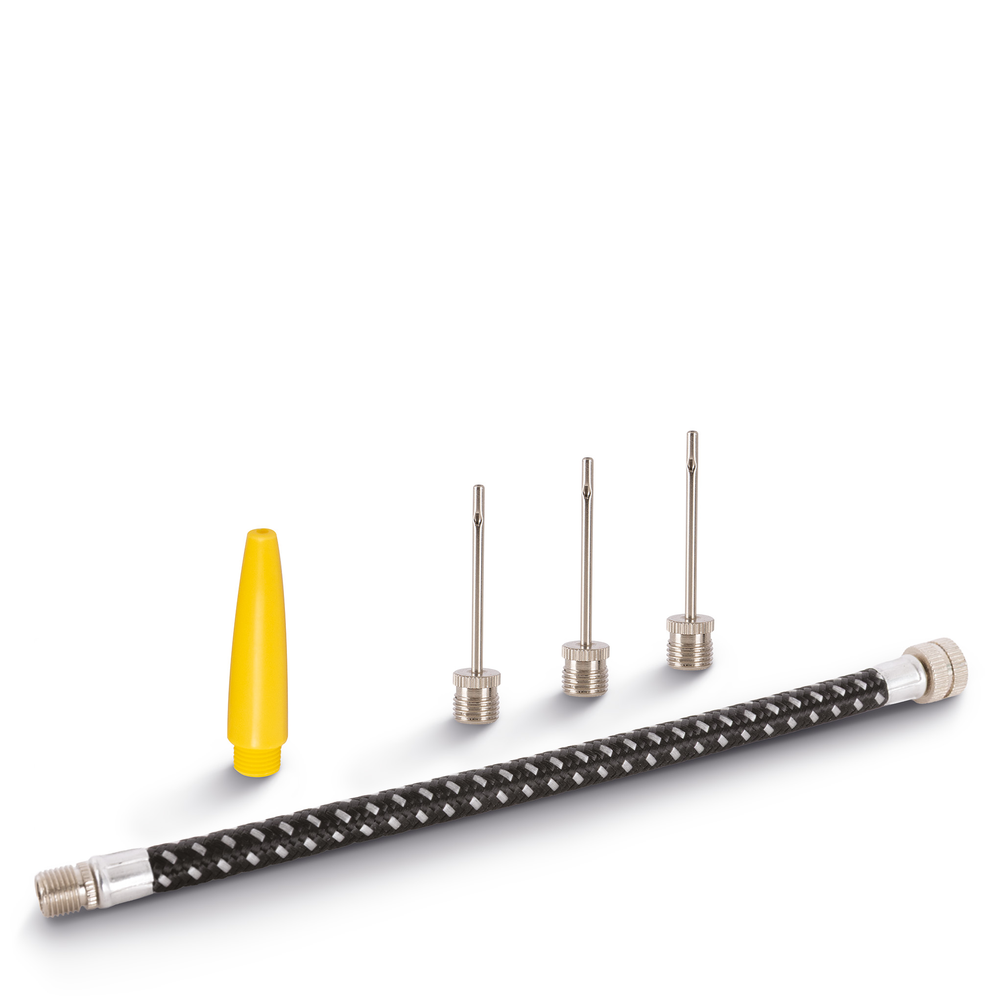 Το Σετ Ακροφυσίων και Προέκτασης για Τρόμπες Αέρα Κωδ. 97448 είναι το ιδανικό αξεσουάρ για κάθε αθλητή και προπονητή. Περιλαμβάνει τρεις ανθεκτικές μεταλλικές βελόνες με μεγάλο σπείρωμα, κατάλληλες για όλες τις μπάλες ποδοσφαίρου, μπάσκετ και βόλεϊ. Η πλαστική βελόνα είναι ιδανική για φουσκωτά αντικείμενα, ενώ η εύκαμπτη προέκταση με πλέξη προσφέρει μεγαλύτερη άνεση και ευκολία κατά το φούσκωμα. Το σετ είναι ελαφρύ και εύκολο στη μεταφορά, κάνοντάς το απαραίτητο για κάθε αθλητική δραστηριότητα. Η συμβατότητά του με τις περισσότερες τρόμπες το καθιστά ένα πρακτικό και χρήσιμο εργαλείο για κάθε αθλητή. Είτε είστε επαγγελματίας είτε ερασιτέχνης, αυτό το σετ θα σας βοηθήσει να διατηρήσετε τις μπάλες σας πάντα έτοιμες για παιχνίδι.