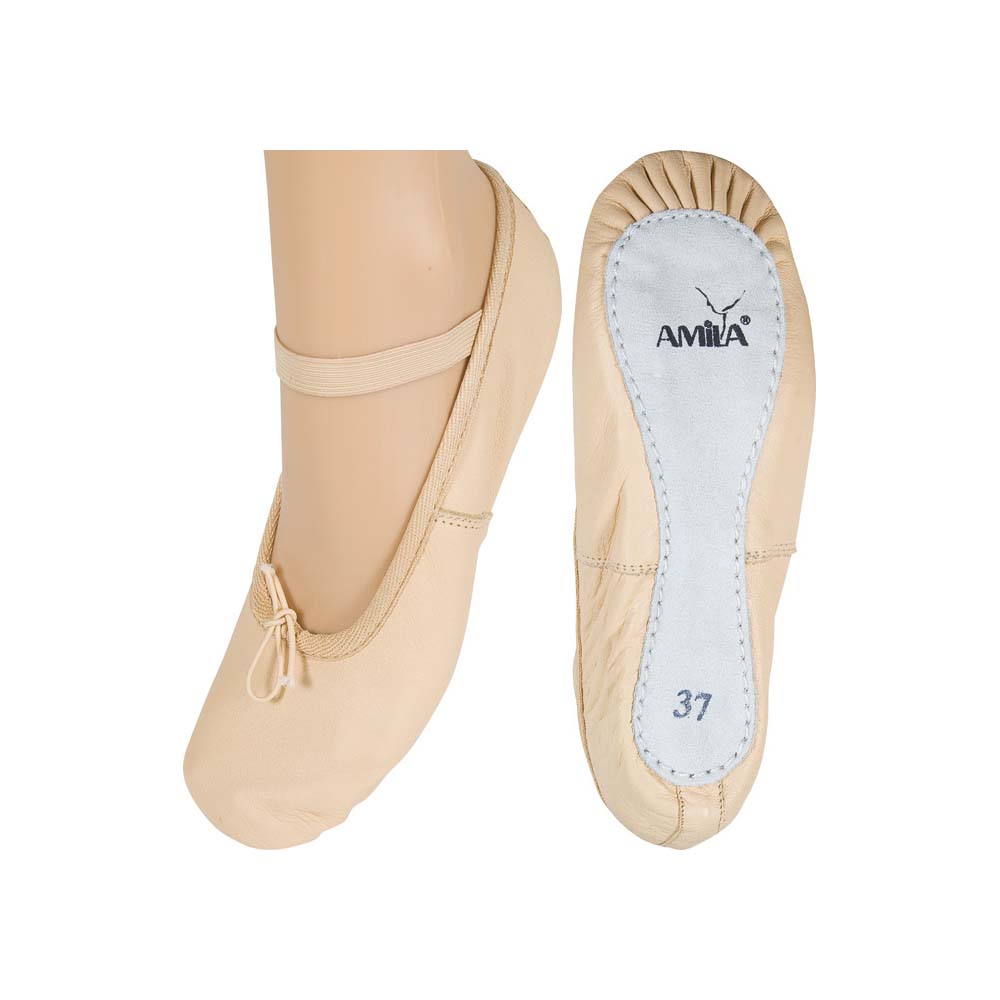 Παπούτσια μπαλέτου Νο 25 της  Amila 48270 από μαλακό δέρμα σε μπεζ χρώμα για άνετες προπονήσεις.Ένα απαραίτητο αξεσουάρ για τους μικρούς και μεγάλους χορευτές μπαλέτου, το οποίο διατίθεται σε πολλά νούμερα μέχρι το Νο 41 .Μπορεί να φορεθεί πολύ εύκολα ,καθώς διαθέτει λάστιχο στο επάνω μέρος έτσι ώστε να αυξομειώνεται ανάλογα με το πλάτος του ποδιού.