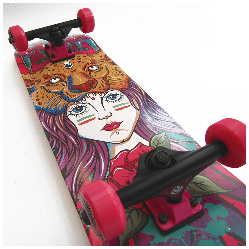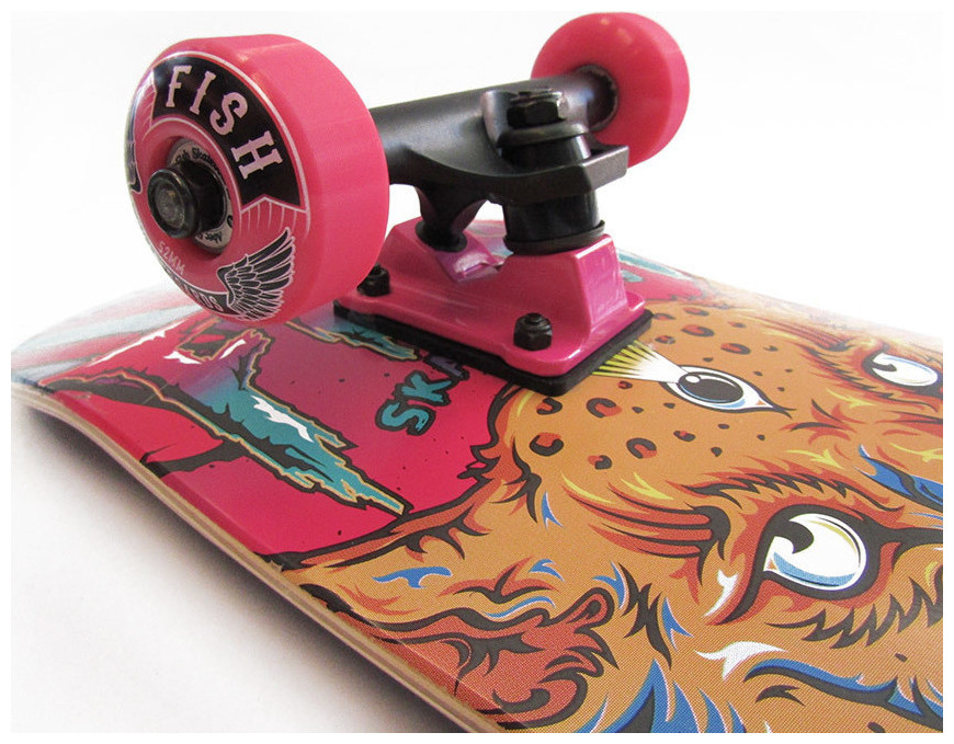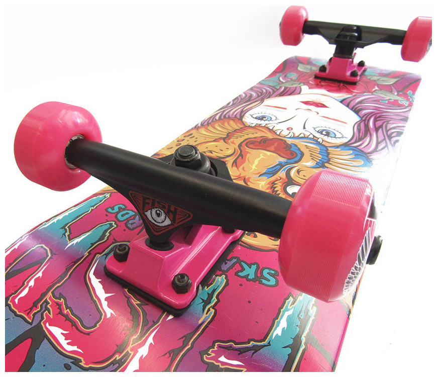 Μια εξαιρετική επιλογή με ποιοτικά χαρακτηριστικά και πρωτότυπα γραφικά από τη Fish Skateboards, ιδανική για να ικανοποιήσει τους λάτρεις τους street skating. Η κλασική σανίδα 31’’ × 8’’ κατασκευασμένη από 9 στρώσεις Κινέζικο ξύλο (Chinese Maple) είναι κατάλληλη για χρήση τόσο από έμπειρους όσο και από αρχάριους αναβάτες. Είναι εξοπλισμένη με Ρόδες PU ροζ, διαστάσεων 54 x 36 mm που διευκολύνουν στο street skating, ενώ διαθέτει σύστημα trucks 5’’ από αλουμίνιο και ποιοτικό ρουλεμάν Abec-7, που επιτρέπει τις ρόδες να κυλούν σωστά και ομαλά. Το προϊόν είναι σχεδιασμένο με τέλειο concave που βοηθά στη βέλτιστη προσκόλληση των ποδιών στην επιφάνεια, ενώ χάρη στα kick tail στις δύο άκρες, στο οπίσθιο και εμπρόσθιο μέρος, η σανίδα είναι ειδικά σχεδιασμένη για να προσφέρει ευκολία στα πετάγματα και τα κόλπα. Με την ποιοτική εκτύπωση και τα πρωτότυπα γραφικά σε σχέδιο ρόμβων στο κάτω μέρος, αυτό το skate ήρθε για να σας χαρίσει στυλ σε κάθε σας βόλτα!