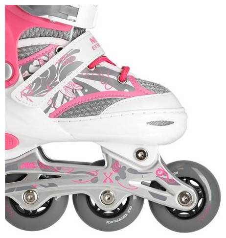 Rollers NA10602A της Nils Extreme ιδανικό αξεσουάρ για ατελείωτες βόλτες χωρίς εμπόδια και ξέγνοιαστες στιγμές διασκέδασης με την παρέα. Κατάλληλο και για αρχάριους χρήστες, βοηθώντας τους με τα πρώτα τους βήματα. Το αεριζόμενο παπούτσι είναι κατασκευασμένο από συνθετικό δέρμα, υλικό EVA, πλέγμα MESH και αφρό υψηλής πυκνότητας χαρίζοντας άνεση και διάρκεια στην χρήση. Τα ρουλεμάν της κατηγορίας ABEC7 προσφέρουν πρόσφυση υψηλής ποιότητας. Οι μαλακοί τροχοί PU72 mm εγγυώνται καλή πρόσφυση στο έδαφος και απορροφούν καλά όλες τις δονήσεις. Η στερέωση του παπουτσιού με αγκράφα δύο τμημάτων, το Velcro και τα κορδόνια διασφαλίζει τη μέγιστη ασφάλεια κατά την οδήγηση, ενώ το φρένο κατασκευασμένο από υψηλής ποιότητας PP, ανθεκτικό στις κρούσεις, θα προκαλέσει ασφαλή στάση, ακόμη και σε σχετικά υψηλές ταχύτητες. Η δυνατότητα προσαρμογής μεγέθους σας δίνει την δυνατότητα να το προσαρμόσετε ανάλογα με τις ανάγκες του χρήστη. Χαρίστε στα παιδία σας ξέγνοιαστες στιγμές διασκέδασης και ατελείωτες βόλτες με τα Inline Skates της Nils Extreme.