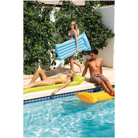Φουσκωτό στρώμα της Intex ιδανικό για να απολαμβάνετε ξέγνοιαστες στιγμές χαλάρωσης στο νερό μαζί με την παρέα σας. Με προσκέφαλο για να απολαμβάνετε ένα άνετο και αναπαυτικό κάθισμα. Κατασκευασμένο από βινύλιο για μέγιστη αντοχή σε βάρος έως 100 κιλά.