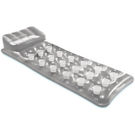 Απολαύστε την πλεύση στο νερό με το κλασικό και αγαπημένο φουσκωτό ποτηράτο στρώμα. Όμορφος σχεδιασμός 18 ποτηροθηκών το 18 Pocket Fashion Mat από την Intex έχει κατακτήσει την Ελλάδα τα τελευταία χρόνια. Διάφανο υλικό επάνω και γκρι κάτω που αντανακλά κάνοντας όμορφα παιχνίδια με το φως. Ενσωματώνει μαξιλάρι, και 2 αεροθαλάμους για επιπλέον χαλάρωση ενώ επιπλέετε.