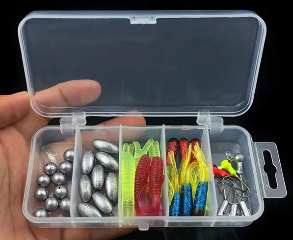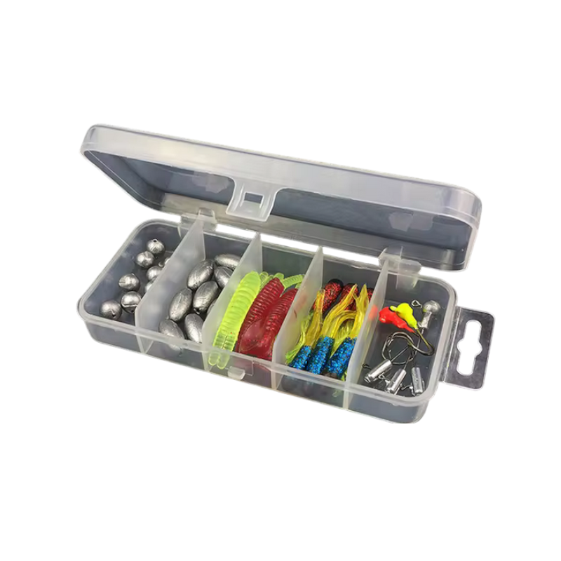 Πλήρες σετ αξεσουάρ ψαρέματος σε εργονομική πλαστική κασετίνα με διαχωριστικά.