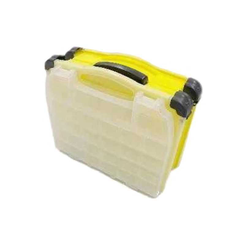 Πλαστικό κουτί-κασετίνα διπλής όψης, ιδανικό για την αποθήκευση και μεταφορά των αξεσουάρ αλιείας σας, με πολλαπλές θήκες και διαχωριστικά.