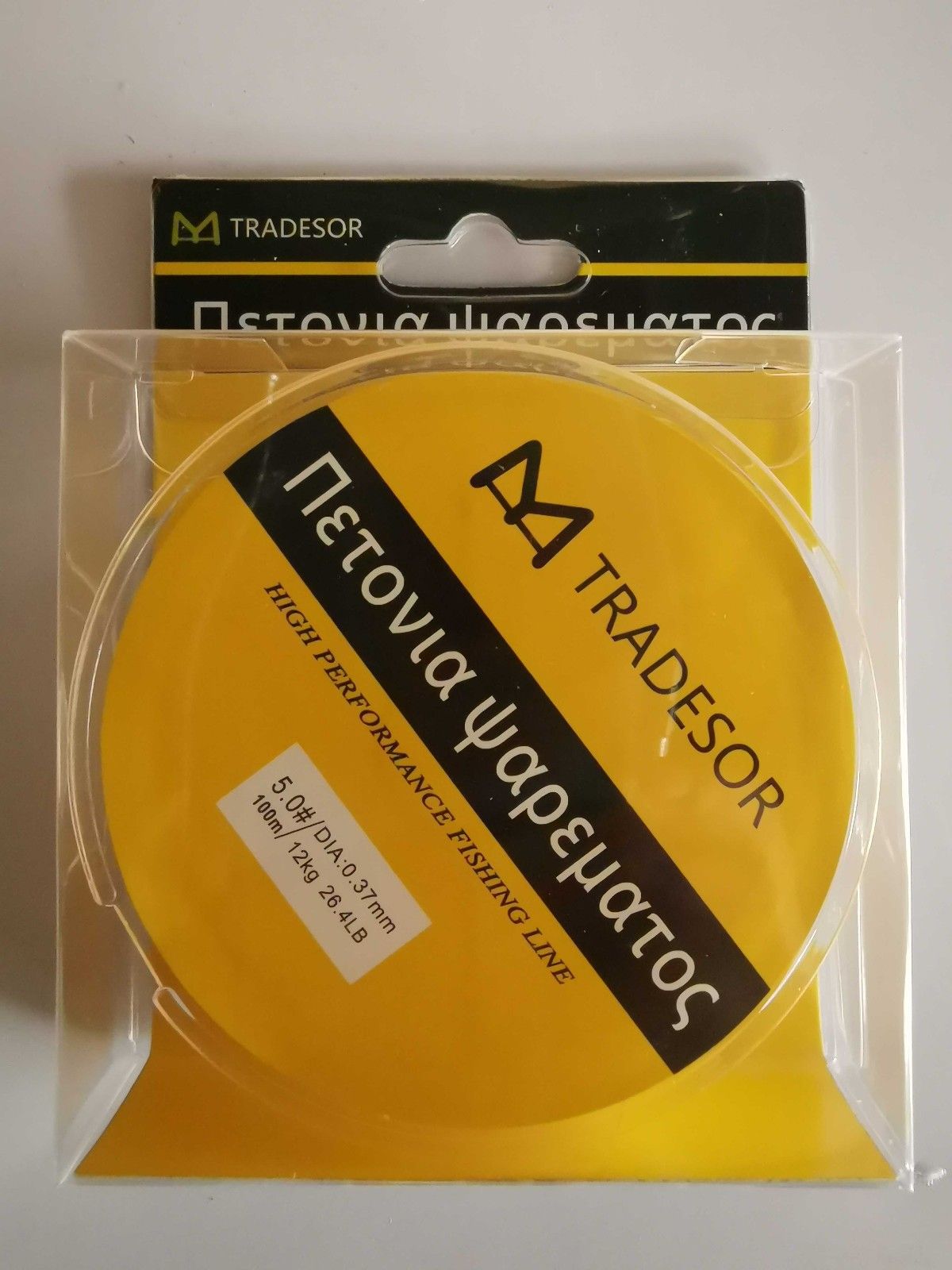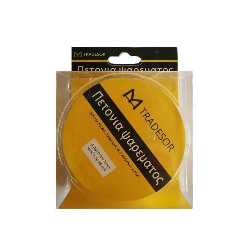 Η Tradesor, βάσει της υψηλής τεχνογνωσίας και του τεχνολογικού εξοπλισμού που χρησιμοποιεί, έχει κατασκευάσει μια σειρά από πετονιές ψαρέματος υψηλής ποιότητας και αντοχής. Ο τρόπος με τον οποίο έχουν σχεδιαστεί εξασφαλίζει στην πετονιά μηδενική μνήμη, ταχεία βύθιση και συνάμα την κάνει εξαιρετικά μαλακή παρά την μεγάλη αντοχή της. Είναι 100% αόρατη με μεγάλες αντοχές στον κόμπο και στα γδαρσίματα. Μέγεθος: 5.0#