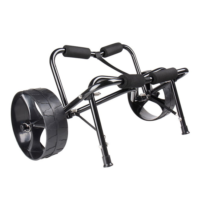 Τρέιλερ αλουμινίου με πλαστικές ρόδες. Μέγεθος όταν είναι διπλωμένο: 69,5 x 31 x 8.5 cm Βάρος: 3,32 kg Μέγιστο φορτίο: 90 kg Χρώμα: Μαύρο Αντί να μεταφέρετε το καγιάκ, κυλήστε το! Γερό και κομψό ρυμουλκούμενο για καγιάκ και stand-up paddle. Ανθεκτική κατασκευή αλουμινίου υψηλής ποιότητας. Το καροτσάκι μπορεί να διπλωθεί, οι τροχοί να αφαιρεθούν εύκολα και να αποθηκευτούν.