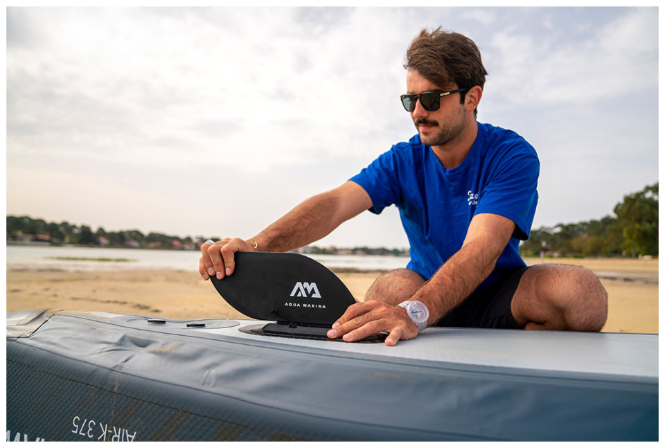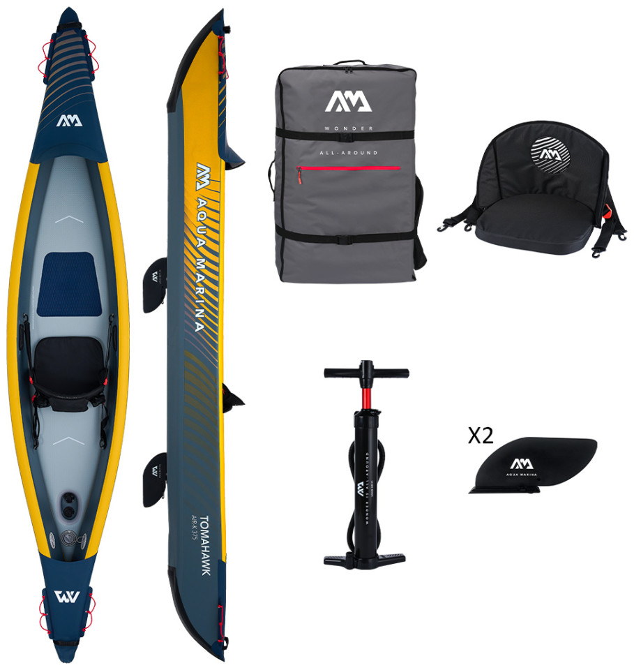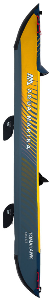 Φουσκωτό Κανοε Tomahawk I Air-K375 της Aqua Marina Σχεδιασμένο για θάλασσα με ήρεμα νερά, λίμνες και κανάλια. O εξαιρετικός συνδυασμός, σχεδιασμού κύτους και φουσκωτής καρίνας ,δίνει μεγάλη σταθερότητα και ταχύτητα στην κωπηλασία. Πλώρη σχεδιασμένη ώστε να απομακρύνει τα νερά κατά την πλεύση. Χειρολαβές μεταφοράς από καουτσούκ. 3 βαλβίδες αέρα για μεγαλύτερη ασφάλεια σε μεγάλες αποστάσεις. Κάθισμα με ψηλή πλάτη, αφρώδες μαξιλάρι και τσέπες για αποθήκευση αντικειμένων. Η Συσκευασία εκτός από το κανο περιλαμβάνει σακίδιο μεταφοράς με φερμουάρ, 1 κάθισμα ψηλής πλάτης με αφρώδες μαξιλάρι και τσέπες, 2 πτερύγια καγιάκ, αντλία αέρος διπλής ενέργειας Liquid Air V1.