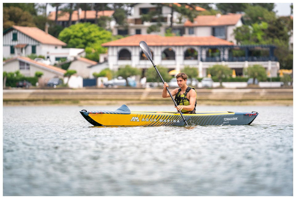 Φουσκωτό Kανο Tomahawk της Aqua Marina κατασκευασμένο εξολοκλήρου με τεχνολογία drop – stitch σας εγγυάται αντοχή έως και 128 κιλά.