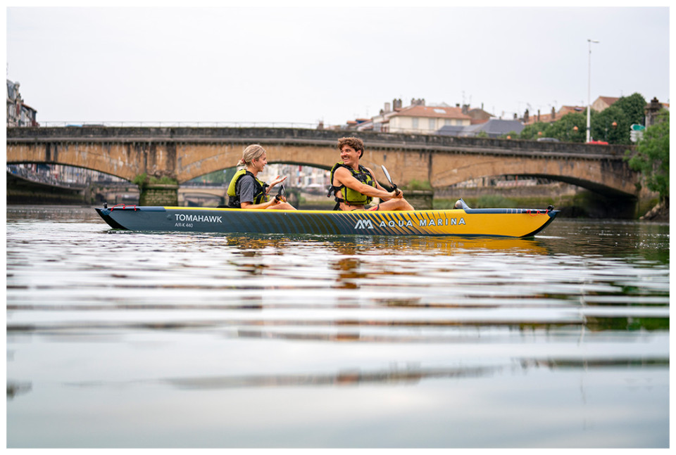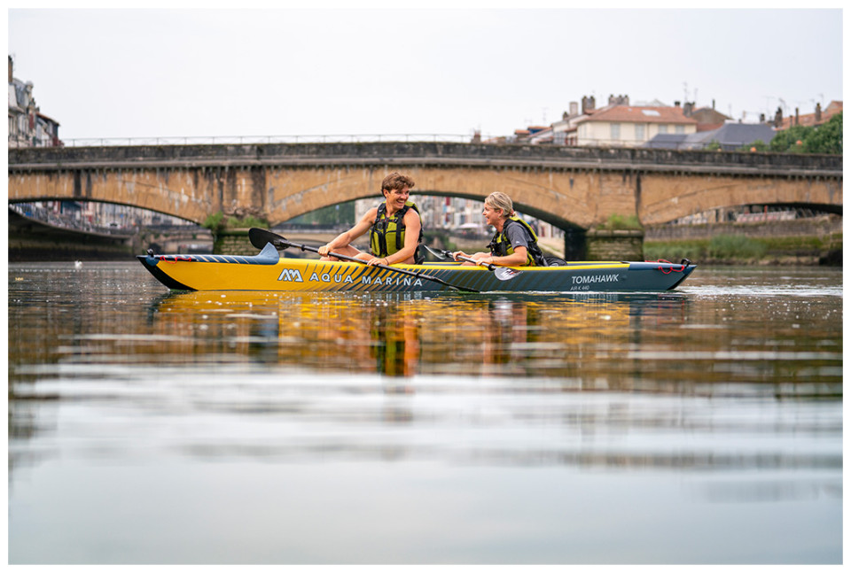 Φουσκωτό Kανο Tomahawk της Aqua Marina κατασκευασμένο εξολοκλήρου με τεχνολογία drop – stitch σας εγγυάται αντοχή έως και 210 κιλά.