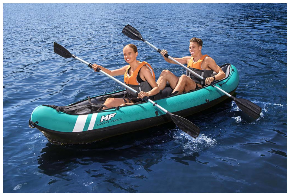 Το "VENTURA" kayak της BESTWAY, αποτελεί ένα συμπαγές και ελαφρύ φουσκωτό κανό, που σχεδιάστηκε για να σας προσφέρει μοναδικές στιγμές διασκέδασης, χαλάρωσης ή άθλησης μέσα σε ήρεμα νερά, στη θάλασσα, σε λίμνη, σε ποτάμι! Με βάρος μόλις 17,4 Kg, δέχεται 2 ενήλικες και μέγιστο φορτίο 200 Kg! Διαθέτει εξαιρετικά ανθεκτικό κάλυμμα nylon, για προστασία των εσωτερικών θαλάμων, ενώ πρόκειται για ένα ολοκληρωμένο σετ που περιλαμβάνει αντλία αέρος χειρός Air Hammer, 2 διπλά κουπιά 2,18cm, 2 καθίσματα με θήκες, 1 σάκο αποθήκευσης αντικειμένων, βαλβίδα αποστράγγισης και σετ επισκευής! Μέγιστη ασφάλεια και αντοχή, είναι εύκολο στον χειρισμό του, εύκολο στη μεταφορά, το "VENTURA" kayak εξασφαλίζει καλή ολίσθηση επιτρέποντάς σας να απολαμβάνετε το τοπίο χωρίς να εξαντλείστε!