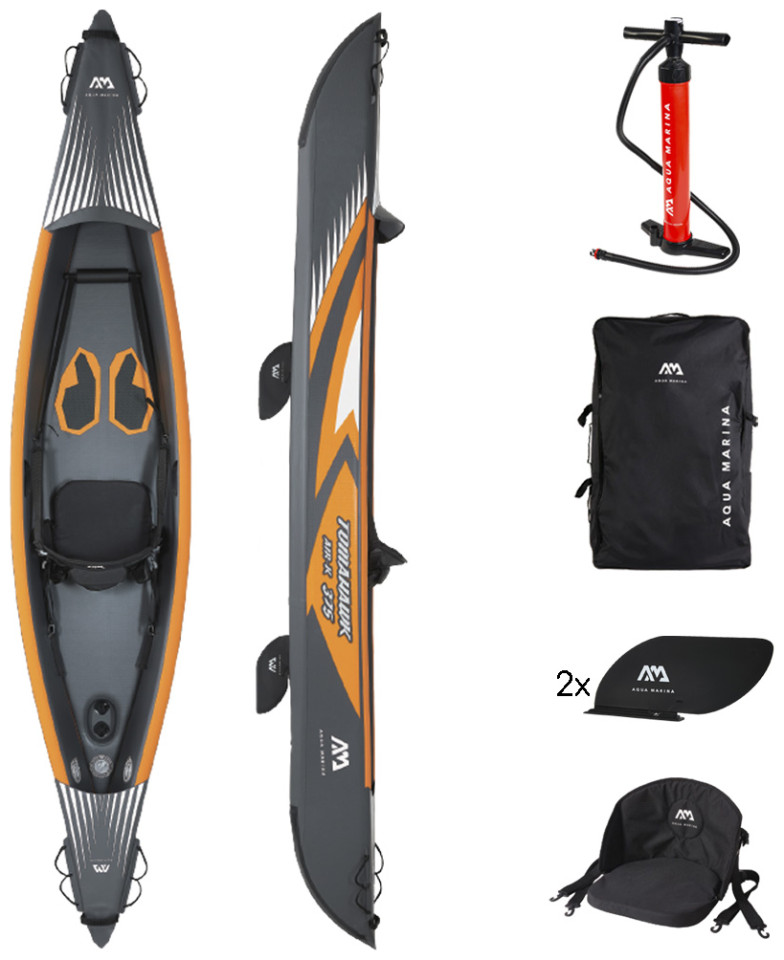 Το φουσκωτό καγιάκ TOMAHAWK I της AQUAMARINA θα σας συναρπάσει! Με όμορφη σπορ γραμμή, εξαιρετική απόδοση στο νερό, ποιοτική κατασκευή από πολύ ανθεκτικό ενισχυμένο PVC, κάθισμα με τεχνολογία Drop-stitch PVC, slide-in κεντρικό πτερύγιο, και μανόμετρο, εντυπωσιάζει με το επίπεδο της ακαμψίας και της ταχύτητάς του! Στη συσκευασία θα βρείτε επίσης ένα κοθπί, κιτ επισκευής και σακίδιο πλάτης Magic. Το πρώτο καγιάκ που συνδυάζει τα χαρακτηριστικά του φουσκωτού καγιάκ με εκείνα του κλασικού κανό, είναι ειδικά σχεδιασμένο για να ανταποκρίνεται σε δύσκολο περιβάλλον κωπηλασίας και στο παράκτιο και σε μεγάλες λίμνες ψάρεμα! Ένα φοβερό μέσο ψυχαγωγίας και άθλησης!