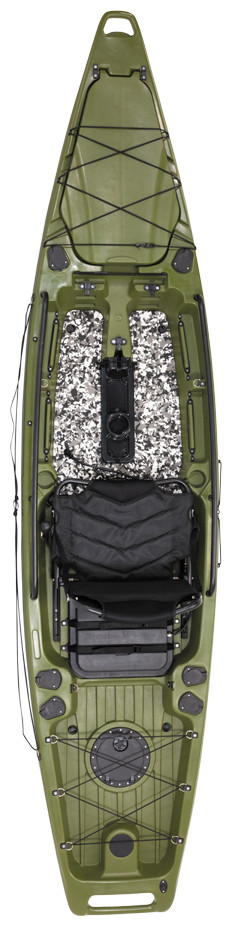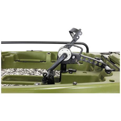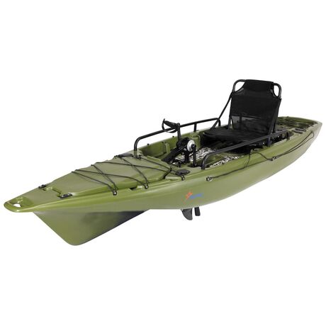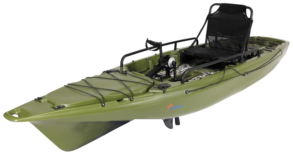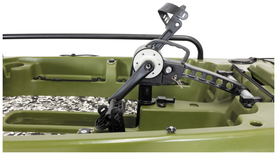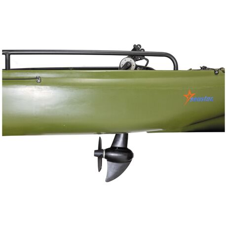Καγιάκ για ένα άτομο σχεδιασμένο για γρήγορες επιδόσεις με υποδοχή πεταλιέρας ή μοτέρ. Είναι ιδανικό για ψάρεμα και για όποιον θέλει να ξεκινήσει τις θαλάσσιες δραστηριότητες του. Διαθέτει μεγάλο αποθηκευτικό χώρο στην πλώρη και καταπακτή τοποθέτησης της μπαταρίας για το μοτέρ. Το πηδάλιο είναι εύκολο στο χειρισμό και το κάθισμα είναι κατασκευασμένο από αλουμίνιο για υψηλή αντοχή, συρόμενο για να ρυθμίζετε την θέση και ανακλινόμενη πλάτη. Οι συνολικές διαστάσεις του καγιάκ είναι 3.80χ85χ0.38 cm, και μέγιστο βάρος χρήστη τα 150kg.