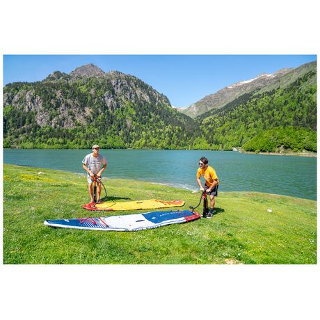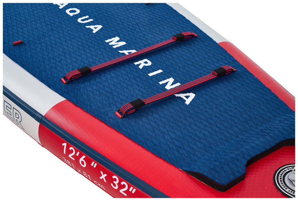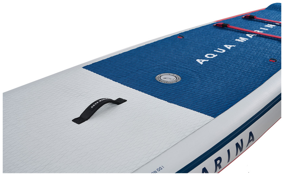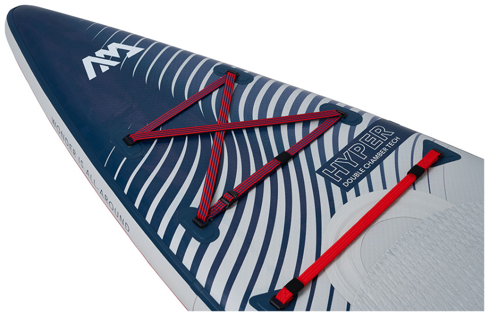 Φουσκωτή Σανίδα Sup Hyper Touring της Aqua Marina νεο μοντέλο με ρομβοειδές ανάγλυφο αντιολισθητικό υλικό EVA με υφή άμμου για μέγιστη σταθερότητα και άνεση. Υδροδυναμικός σχεδιασμός με τεχνολογία Fore Keel™ Technology στο μπροστινό μέρος για ευκολότερη υδρολίσθηση και Rectangular Rail Edge (REC EDGE™) στο πίσω για γρήγορη πορεία και αποδοτικές «κουπιές». Διπλό σύστημα Red Strap™ συγκράτησης αντικειμένων στο μπροστινό και στο πίσω μέρος της σανίδας. Συμπαγής χειρολαβή Neoprene με επένδυση ιμάντα για μεγαλύτερη αντοχή και άνεση. Kick pad στην ουρά για επιτόπιες στροφές και ελιγμούς. Διαθέτει κρίκους από ανοξείδωτο ατσάλι για τοποθέτηση καθίσματος, που το μετατρέπει σε sit-on-top kayak. Η Συσκευασία περιλαμβάνει όλα τα απαραίτητα αξεσουάρ για να απολαμβάνεται και άνεση και ασφάλεια το αγαπημένο σας χόμπι. Αναλυτικότερα, μαζί με την Σανίδα Sup στην συσκευασία περιλαμβάνεται σάκος μεταφοράς με φερμουάρ, λουρί αστραγάλου σπιράλ και αντλία αέρος διπλής ενέργειας Liquid Air V2.
