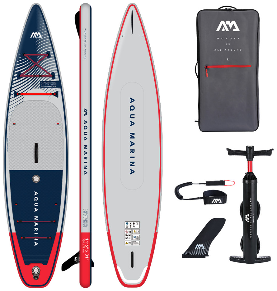 Φουσκωτή Σανίδα Sup Hyper Touring της Aqua Marina μαζί με όλα τα απαραίτητα αξεσουάρ για να απολαμβάνεται με άνεση το αγαπημένο σας χόμπι.