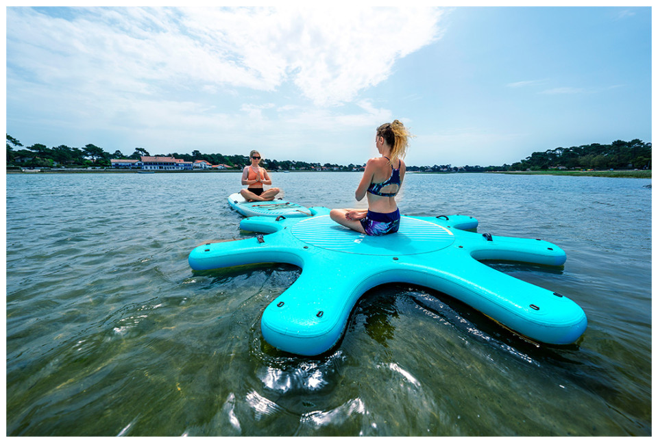 Φουσκωτή Σανίδα Yoga Dock for Dhyana της Aqua Marina με δυνατότητα να δεχτεί έως και 8 σανίδες περιμετρικά.